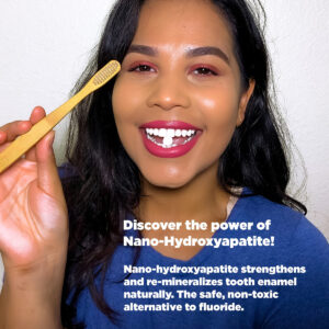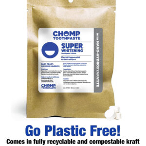 Os comprimidos de creme dental Super Whitening Peppermint com NHAP não apenas clareiam os dentes, mas também fortalecem e restauram o esmalte dentário. Vem em um saco de papel kraft ecológico e totalmente compostável. 60 comprimidos = suprimento para um mês – Branqueia os dentes e refresca o hálito – Sem flúor, xilitol, SLS e sulfato – Ajuda a combater a sensibilidade – Aromatizado naturalmente sem aditivos prejudiciais – Fabricado no sul da Califórnia