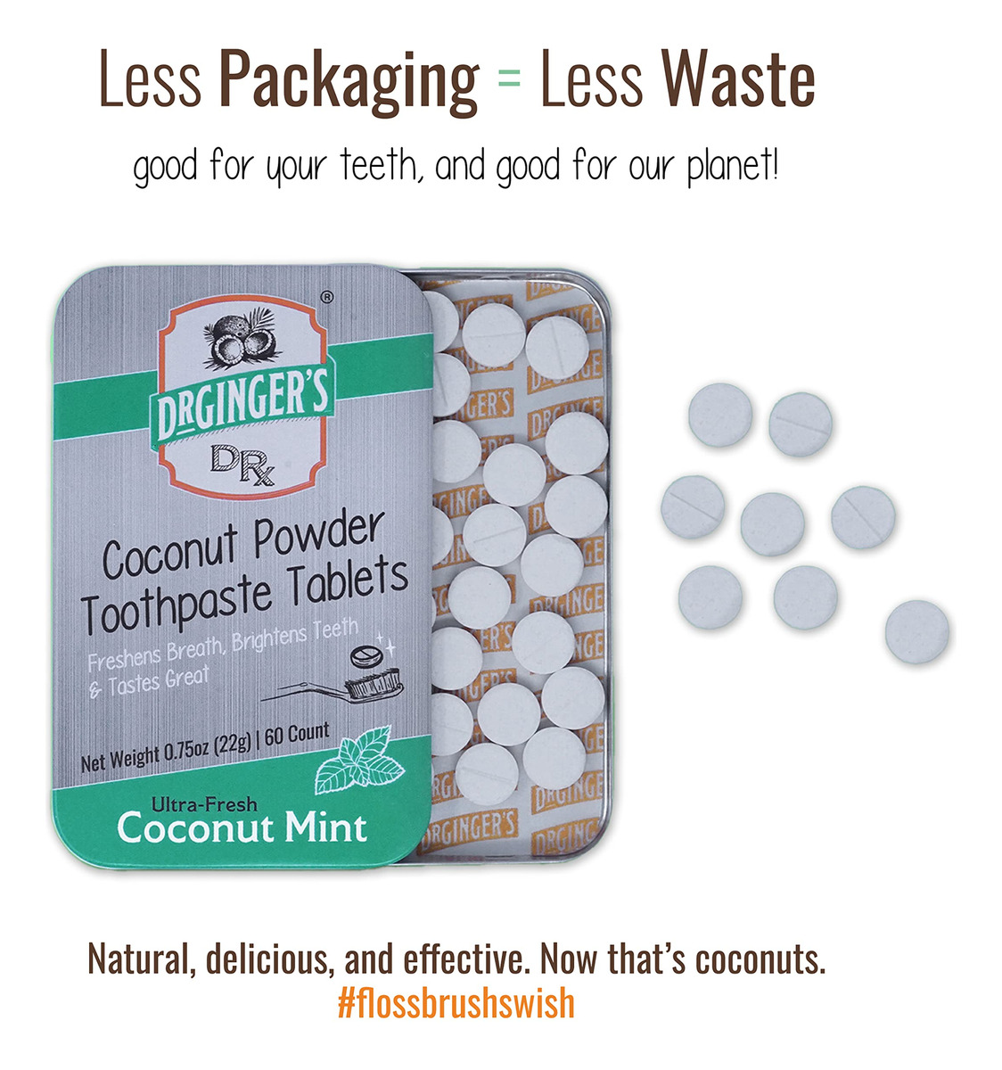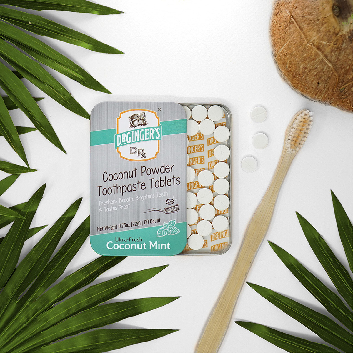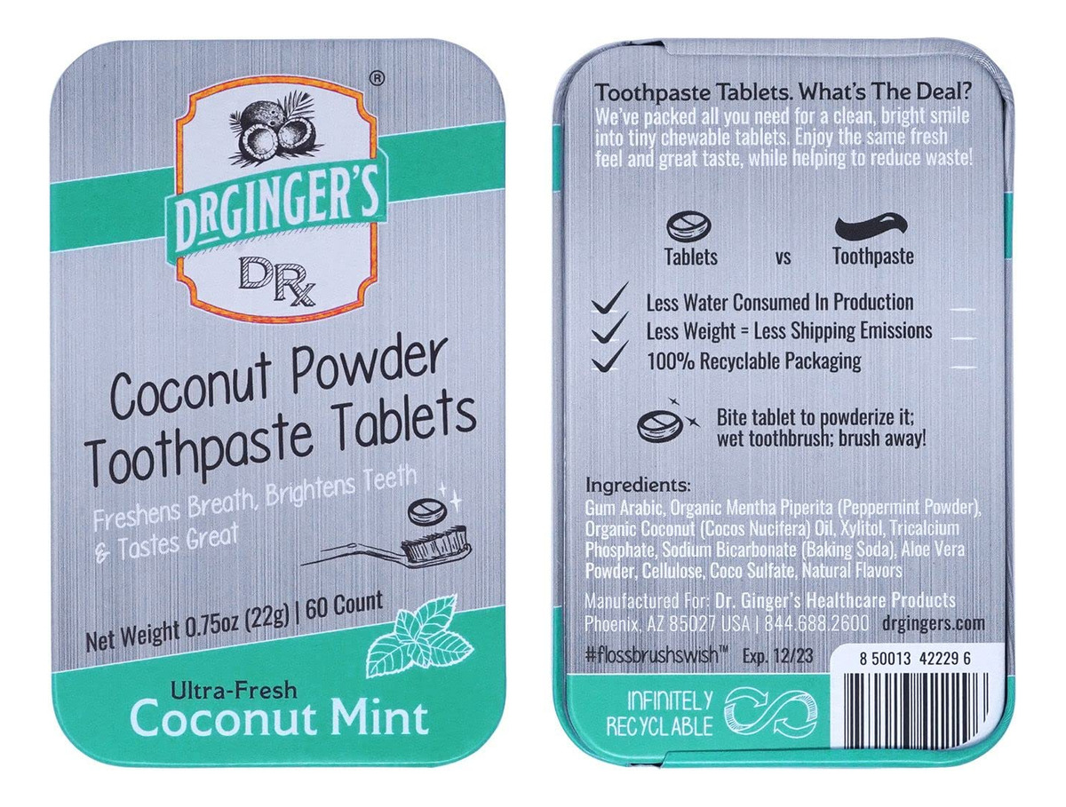 Os comprimidos de creme dental em pó de coco Dr. Ginger são comprimidos em pó para mastigar, repletos de benefícios completos de creme dental. Tudo o que você precisa para um sorriso limpo e brilhante, ajudando a reduzir o desperdício. O método de extração do óleo de coco interrompe agressivamente o acúmulo de placa bacteriana para manter um ambiente natural saudável. As técnicas antiplaca ajudam a fortalecer os dentes e a remover o tártaro. O sabor de coco e menta refresca o hálito e deixa a boca limpa e viva novamente. Os comprimidos são divididos individualmente em 60 porções, 1 comprimido equivale a 1 pincel. Morda o comprimido para pulverizá-lo, molhe a escova de dentes e escove. O design exclusivo tem o tamanho perfeito para uma bolsa de higiene ou para uso em qualquer lugar. Os comprimidos são fabricados em uma lata reciclável para reduzir o desperdício de plástico. Nossos ingredientes naturais de alto desempenho criam um microbioma oral saudável e livre de danos. Todos os produtos da Dr. Ginger são feitos sem flúor, sem glúten, sem álcool, sem crueldade, sem transgênicos e livres de outros ingredientes ruins comuns. A Dra. Ginger acredita que uma receita de origem natural é obrigatória para a integridade de um lindo sorriso. A Dra. Ginger DDS, renomada dentista estética, ajuda pacientes a se apaixonarem por seus sorrisos há mais de 35 anos. Depois de considerar a demanda dos pacientes por cuidados bucais totalmente naturais, o Dr. Ginger formulou a poderosa mistura de ingredientes de óleo de coco e xilitol. Esses ingredientes principais criam um método simples, fácil e limpo para um ambiente bucal livre de danos. Formulado e testado clinicamente pelos melhores químicos dos EUA. A embalagem inclui lata de 0,75 onças com 60 comprimidos. – COMPRIMIDOS DE PASTA DE DENTE DR GINGER'S Comprimidos de pó mastigáveis repletos de benefícios de creme dental. Tudo o que você precisa para um sorriso limpo e brilhante, ajudando a reduzir o desperdício. Feito com óleo de coco orgânico e xilitol para lidar com a higiene bucal de uma maneira totalmente nova; ele reveste os dentes em uma camada luxuosamente lisa que protege as gengivas, repele o mau hálito e clareia os dentes. A embalagem inclui lata de 0,75 onças com 60 comprimidos — FRESCA E SABOROSA. O método de extração do óleo de coco interrompe agressivamente o acúmulo de placa bacteriana para manter um ambiente natural saudável. As técnicas antiplaca ajudam a fortalecer os dentes e a remover o tártaro. O sabor de coco e menta refresca o hálito e deixa a boca limpa e viva novamente – os comprimidos ecológicos e adequados para viagens são divididos individualmente em 60 porções, 1 comprimido equivale a 1 pincel. Morda até ficar em pó, molhe a escova de dentes e escove. O design exclusivo tem o tamanho perfeito para uma bolsa de higiene ou para uso em qualquer lugar. Os comprimidos são fabricados em uma lata reciclável para reduzir o desperdício de plástico – ESCOLHA NATURAL Nossos ingredientes naturais de alto desempenho criam um microbioma oral saudável e livre de danos. Todos os produtos da Dr. Ginger são feitos sem flúor, sem glúten, sem álcool, sem crueldade, sem transgênicos e livres de outros ingredientes ruins comuns. A Dra. Ginger acredita que uma receita de origem natural é obrigatória para a integridade de um lindo sorriso – FORMULADA PELO DENTISTA A Dra. Ginger DDS, uma renomada dentista estética, ajuda pacientes a se apaixonarem por seus sorrisos há mais de 35 anos. Depois de considerar a demanda dos pacientes por cuidados bucais totalmente naturais, o Dr. Ginger formulou a poderosa mistura de ingredientes de óleo de coco e xilitol. Esses ingredientes principais criam um método simples, fácil e limpo para um ambiente bucal livre de danos. Formulado e testado clinicamente pelos melhores químicos dos EUA