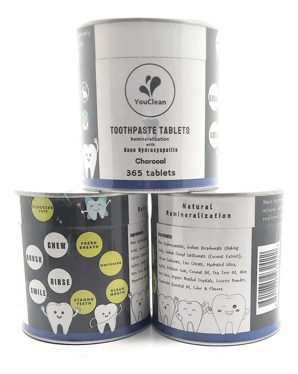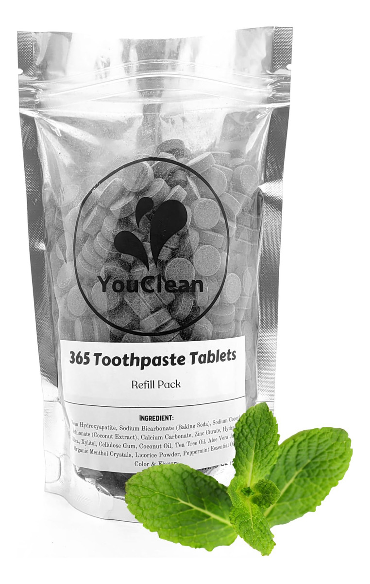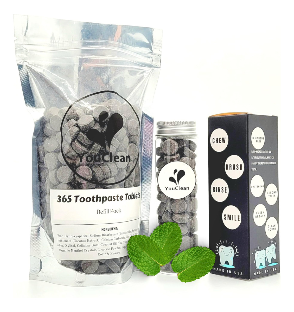 Apresentando o Tablet de Pasta de Dentes YouClean, a solução inovadora e sustentável para sua rotina de higiene bucal. Esses comprimidos convenientes oferecem um aroma refrescante de carvão e menta, deixando sua boca limpa e fresca. Ao contrário do creme dental tradicional, o YouClean Toothpaste Tablet não contém flúor, o que o torna uma escolha segura para toda a família. Mas isso não é tudo – esses comprimidos também contêm nanohidroxiapatita, um mineral natural que ajuda a fortalecer e proteger os dentes. Com o pacote de recarga de 365 comprimidos, você terá um suprimento anual de comprimidos de pasta de dente, reduzindo o desperdício de plástico e economizando dinheiro. Basta colocar um comprimido na boca, mastigar e escovar como de costume para uma limpeza completa e eficaz. Atualize sua rotina de higiene bucal com o comprimido de pasta de dente YouClean e experimente o futuro da pasta de dente. – COMO USAR – Coloque um comprimido na boca, mastigue e molhe a escova de dentes antes de escovar, como de costume. Enxágue, cuspa e sorria. – Ótima espuma – Os comprimidos de creme dental YouClean são feitos de pasta de dente em pó, sem água, prensados em comprimidos. A espuma vem de ingredientes naturais como bicarbonato de sódio, ácido cítrico, óleo de coco e extrato de coco. – NANO-HIDROXIAPATITA + XILITOL + ÓLEO ESSENCIAL NATURAL – Uma combinação natural maravilhosa reconstrói o esmalte dos dentes, combate germes, limpa a boca e acalma os dentes. – LIVRE DE FLÚOR, PRODUTOS QUÍMICOS E GLÚTEN. Os comprimidos de creme dental YouClean removem suavemente manchas superficiais, pragas e tártaros. – Pacote de recarga – 365 comprimidos, material de limpeza suficiente para seu uso diário durante todo o ano.