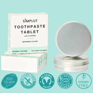 Refresque seu hálito onde quer que você vá Trazer tubos de pasta de dente quando você viaja pode ser um incômodo. Com os comprimidos de creme dental Simpluts, você pode viajar livremente e ter hálito fresco e dentes limpos, não importa onde esteja no mundo. Se você leva a sério a higiene dental, mas odeia a inconveniência de carregar um tubo de pasta de dente para qualquer lugar, as pastilhas de pasta de dente de viagem da SIMPLUT são a resposta. Basta colocar um comprimido de pasta de dente na boca antes de mastigar bem até formar uma espuma espumosa. Escove normalmente antes de enxaguar com água. – Pequeno e poderoso; é hora de dizer adeus à sua pasta de dente normal e usar os comprimidos de pasta de dente mastigável SIMPLUT; basta colocar uma das pastilhas de pasta de dente na boca e mastigar para criar espuma antes de escovar e enxaguar normalmente – LIMPEZA PODEROSA; esses comprimidos de creme dental natural da SIMPLUT foram formulados em estreita consulta com especialistas em odontologia; com Ingredientes escolhidos com cuidado, nosso creme dental natural trabalha duro para remover a placa bacteriana e o acúmulo; quando você precisa controlar o tártaro pastilhas de pasta de dente para dentes deslumbrantes, confie apenas na SIMPLUT – QUALIDADE; nossa pasta de dente em comprimidos passou por uma rigorosa inspeção de qualidade e passou por horas de desenvolvimento com os principais especialistas em odontologia; esses comprimidos para escovar dentes são fabricados de acordo com os mais altos padrões; a promessa da SIMPLUT é esta; se não usássemos esse creme dental natural com flúor, não o venderemos – INGREDIENTES NATURAIS; Nossas pastilhas de creme dental natural para dentistas contêm vitaminas B. 6, E e C, bem como enriquecidos com extratos vegetais como sal de bambu, chá verde e sálvia; com um sabor fresco de hortelã, A solução natural de creme dental SIMPLUT também é vegana e nunca foi testada em animais – ZERO DESPERDÍCIO; as pessoas adoram como nossas pastilhas de pasta de dente para viagem são leves, compactas e fáceis de transportar; melhor ainda, essas pastilhas de pasta de dente para viagem vêm em embalagens reutilizáveis sem resíduos; sem sulfatos, essas pastilhas de pasta de dente sem SLS vêm em uma lata reutilizável de 60 abas ou em uma bolsa a granel que pode ser fechada novamente com 150 abas que podem ser usadas para armazenar outros itens quando terminar