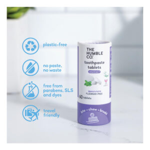 Descubra o que há de melhor em saúde bucal com os comprimidos para dentes sensíveis à pasta de dentes da Humble! Cuidado bucal sem esforço. Diga adeus aos tubos tradicionais de pasta de dente e adote uma maneira mais limpa e simples de manter sua saúde bucal. Com os comprimidos de creme dental sensível da Humble, você pode manter seus dentes e gengivas em ótima forma com facilidade. Basta colocar um mini comprimido de pasta de dente na boca, dar uma mordida suave e escovar com uma escova de dentes molhada. Excelência desenvolvida por dentistas. Nosso creme dental sem SLS é mais do que apenas um creme dental típico. Esses comprimidos para escovar os dentes são a chave para prevenir cáries, proteger o esmalte, fortalecer os dentes e combater o mau hálito. Ecologicamente consciente e vegano. Somos apaixonados por ingredientes melhores para você, e é por isso que nossos comprimidos de creme dental Bite são formulados com produtos naturais. Ingredientes como sorbitol e óleo de menta estão no centro de nossos comprimidos de creme dental anticavity. Nossos comprimidos de pasta de dente não tóxicos vão além de não serem plásticos, mas também são livres de parabenos, SLS e corantes. Escolhas mais ecológicas, futuro mais brilhante. Não nos limitamos aos ingredientes; estamos comprometidos com um planeta mais verde. Nossas pastilhas dentárias para escovação vêm em embalagens totalmente recicláveis e sem plástico, facilitando a manutenção do meio ambiente mesmo em trânsito. Se, por acaso, você não estiver totalmente satisfeito com sua compra, não hesite em entrar em contato. Estamos empenhados em fazer as coisas da maneira certa. Experimente o futuro da higiene bucal com os comprimidos de creme dental Humble's Sensitive Spearmint. Adquira seus comprimidos dentários desenvolvidos por dentistas hoje mesmo! Nossos comprimidos dentais com sabor de hortelã vêm em embalagens de 2, com 60 comprimidos cada. – COMPRIMIDOS MASTIGÁVEIS PARA ESCOVAR OS DENTES: mantenha sua saúde bucal sem esforço com os convenientes comprimidos de pasta de dente Humbles para dentes e gengivas sensíveis. Para usar nosso creme dental para comprimidos, basta colocar um na boca, dar um pouco delicadamente e começar a escovar com uma escova de dentes úmida. Fabricamos nosso creme dental em comprimidos Sensitive sem flúor. – DESENVOLVIDO POR DENTISTAS: Desenvolvidos por dentistas, os comprimidos de creme dental Humble Co ajudam a prevenir cáries, proteger o esmalte, fortalecer os dentes e combater o mau hálito. Oferecemos opções de creme dental sem flúor e com flúor. – FEITO PARA DENTES SENSÍVEIS: acreditamos em ingredientes melhores para você, e é por isso que nossos comprimidos de creme dental vegano são formulados com ingredientes de origem natural, como sorbitol e óleo de menta, para cremes dentais sensíveis ao dia a dia. – Comprimidos e embalagens de creme dental GO GREEN: nossos comprimidos de creme dental mastigáveis não são apenas o creme dental perfeito para viagens e estão em conformidade com a TSA, mas são totalmente compatíveis com a TSA embalagem reciclável, sem plástico, leve e fácil de embalar. – PARA PESSOAS MAIS SAUDÁVEIS EM UM PLANETA MAIS SAUDÁVEL: Por continuando a apoiar nossa linha de produtos, incluindo nossos tablets para limpeza de dentes, você contribui para nossa humilde missão. Se por algum motivo você não estiver satisfeito com seu produto, basta entrar em contato conosco e faremos tudo ao nosso alcance para corrigi-lo!