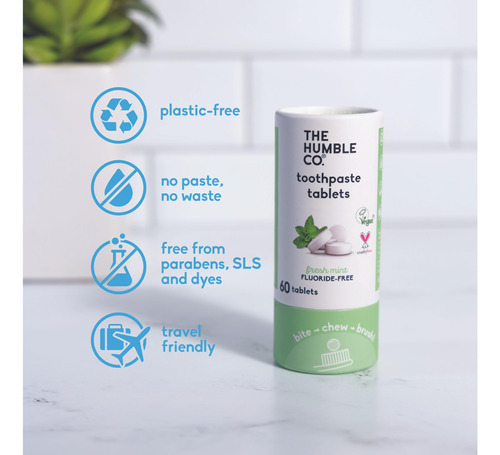 Adios, sayonara, adeus plásticos! cheque sem bagunça, cheque ideal para viagens. Os comprimidos de creme dental Superduper Check aprovados pela mãe natureza são basicamente pastas de dente comuns, menos a água. Isso significa que não precisamos enviar água da torneira regularmente para todo o mundo, porque já há bastante água na torneira. – PASTA DE DENTE EM COMPRIMIDOS SEM FLÚOR: mantenha seus dentes e gengivas saudáveis com as convenientes pastilhas de creme dental anticavity da Humble. Para usar esses comprimidos de creme dental natural, basta colocar um (1) na boca, morder e escovar com uma escova de dentes molhada. Fabricamos nosso creme dental em comprimidos sem flúor, mas também oferecemos uma opção de flúor. – DESENVOLVIDO POR DENTISTAS: Nossa fórmula para combater cáries foi desenvolvida por dentistas, oferecendo comprimidos de limpeza dental premium que são clinicamente comprovados para prevenir cáries, proteger o esmalte, fortalecer os dentes e combater o mau hálito. – Feito com ingredientes totalmente naturais: acreditamos em ingredientes melhores para você, e é por isso que nossos comprimidos de creme dental veganos são formulados com ingredientes de origem natural, como sorbitol e óleo de menta, para pastas dentais totalmente naturais. – PASTA DE DENTES ECOLÓGICA COMPRIMIDOS E EMBALAGENS: Nossos objetivos de permanecermos ecológicos e sustentáveis não se referem apenas aos ingredientes. As pastilhas de pasta de dente sem flúor vêm em embalagens totalmente recicláveis e sem plástico, ótimas para viagens. – PARA PESSOAS MAIS SAUDÁVEIS EM UM PLANETA MAIS SAUDÁVEL: Esperamos que você ame nossos produtos. No entanto, se por algum motivo você não estiver satisfeito com sua compra, entre em contato conosco e faremos tudo ao nosso alcance para corrigi-la!