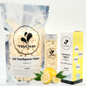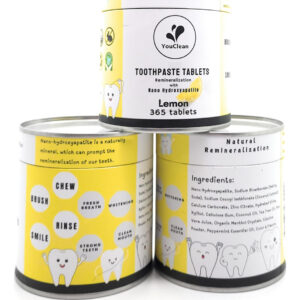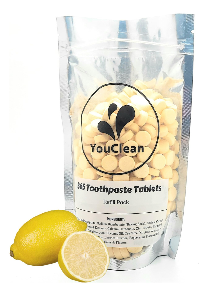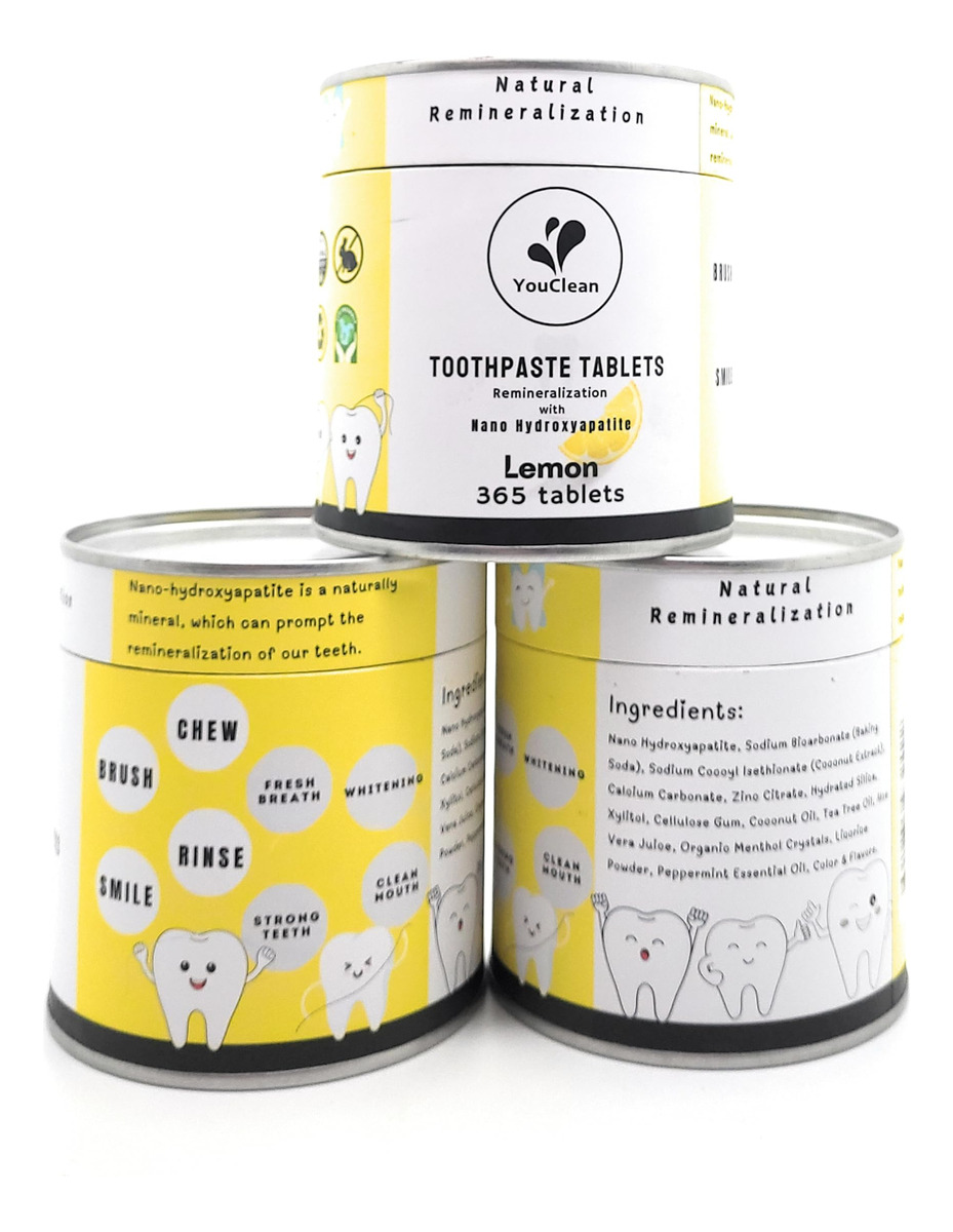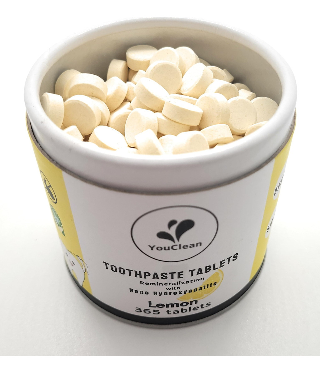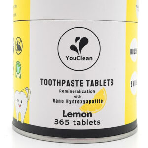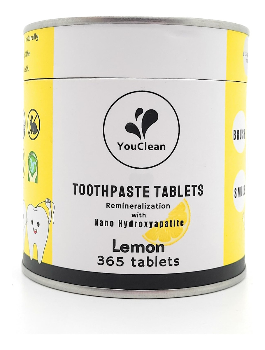 Apresentando o Tablet de Pasta de Dentes YouClean, a solução inovadora e sustentável para sua rotina de higiene bucal. Esses comprimidos convenientes oferecem um aroma refrescante de limão, deixando sua boca limpa e fresca. Ao contrário do creme dental tradicional, o YouClean Toothpaste Tablet não contém flúor, o que o torna uma escolha segura para toda a família. Mas isso não é tudo – esses comprimidos também contêm nanohidroxiapatita, um mineral natural que ajuda a fortalecer e proteger os dentes. Com o pacote de recarga de 365 comprimidos, você terá um suprimento anual de comprimidos de pasta de dente, reduzindo o desperdício de plástico e economizando dinheiro. Basta colocar um comprimido na boca, mastigar e escovar como de costume para uma limpeza completa e eficaz. Atualize sua rotina de higiene bucal com o comprimido de pasta de dente YouClean e experimente o futuro da pasta de dente. – COMO USAR – Coloque um comprimido na boca, mastigue e molhe a escova de dentes antes de escovar, como de costume. Enxágue, cuspa e sorria. – Ótima espuma – Os comprimidos de creme dental YouClean são feitos de pasta de dente em pó, sem água, prensados em comprimidos. A espuma vem de ingredientes naturais como bicarbonato de sódio, ácido cítrico, óleo de coco e extrato de coco. – NANO-HIDROXIAPATITA + XILITOL + ÓLEO ESSENCIAL NATURAL – Uma combinação natural maravilhosa reconstrói o esmalte dos dentes, combate germes, limpa a boca e acalma os dentes. – LIVRE DE FLÚOR, PRODUTOS QUÍMICOS E GLÚTEN. Os comprimidos de creme dental YouClean usam alternativas naturais de nanohidroxiapatita e carbonato de cálcio para fortalecer e proteger nossos dentes. – PACOTE DE RECARGA – 365 comprimidos, material de limpeza suficiente para seu uso diário durante todo o ano.