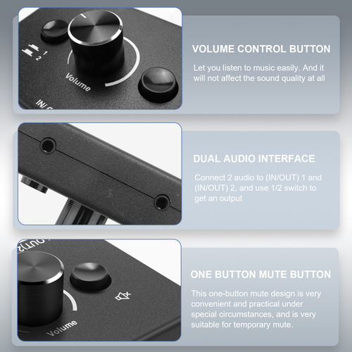 [Botão de silenciar com uma tecla] O seletor de áudio tem uma função de mudo de uma tecla que permite interromper rapidamente a reprodução. Com esse design mudo de uma tecla, é muito conveniente e útil em condições especiais, o que funciona muito bem para silenciar temporariamente o som.