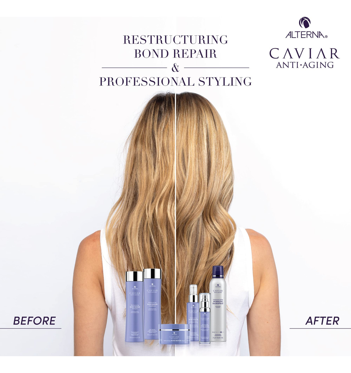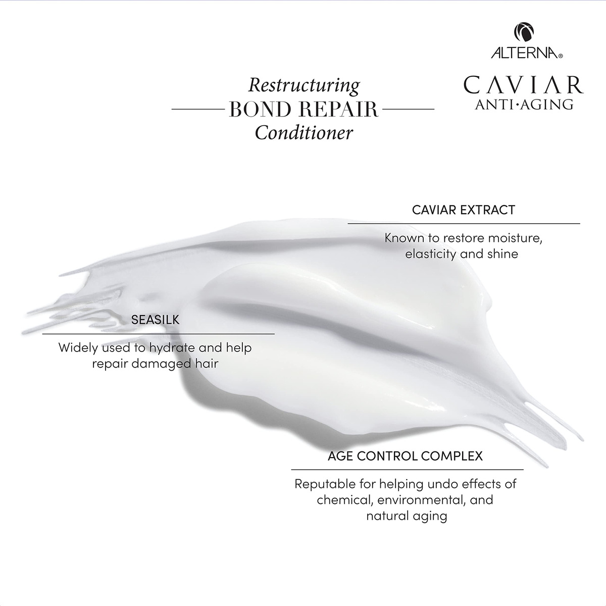 Condicionador antienvelhecimento e reestruturante Alterna Caviar, 16,5 fl oz (pacote com 1) — Ajuda a recriar, reconstruir e reconectar os laços quebrados no cabelo, reduzindo quebras e pontas duplas em mais de 99% — Perfeito para cabelos lisos, ondulados, encaracolados, enrolados e bem enrolados — Contém nossa exclusiva tecnologia Caviar Bond Enforcing que ajuda a restabelecer a superfície do cabelo, rachaduras e fissuras dos fios danificados com sua aparência virgem e saudável — Formulado com luxuoso extrato de caviar, rico em ácidos graxos ômega, vitaminas e minerais para ajudar a defender e proteja contra os fatores que fazem com que o cabelo pareça mais velho: envelhecimento físico, químico e natural – Como usar: após a limpeza, massageie em todo o cabelo molhado. Enxaguar