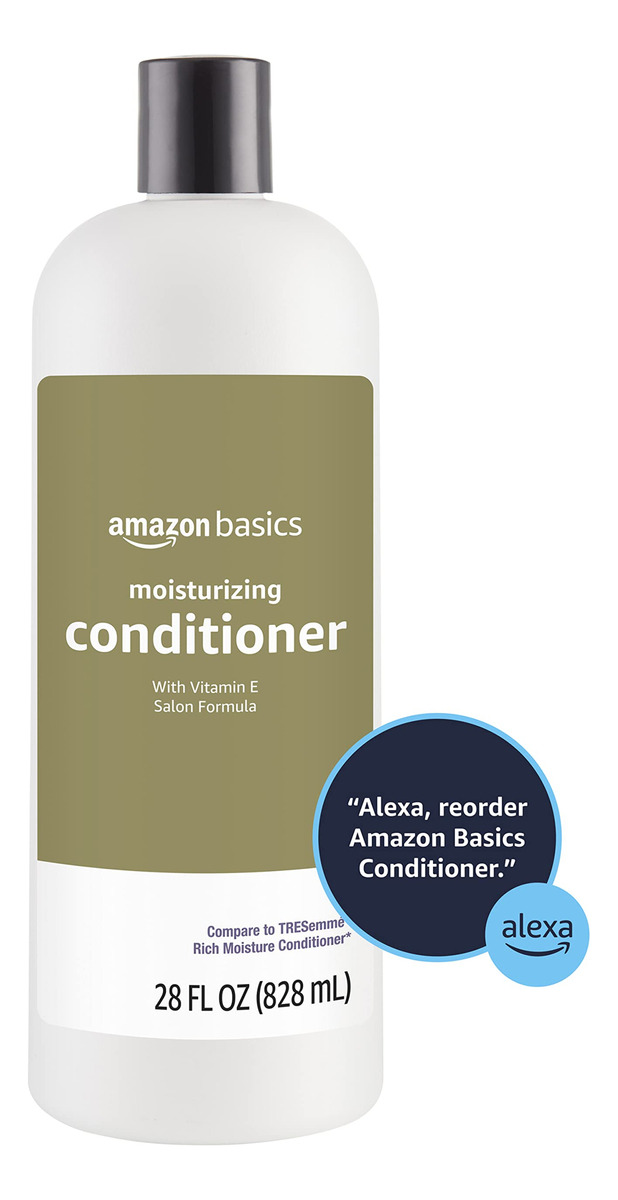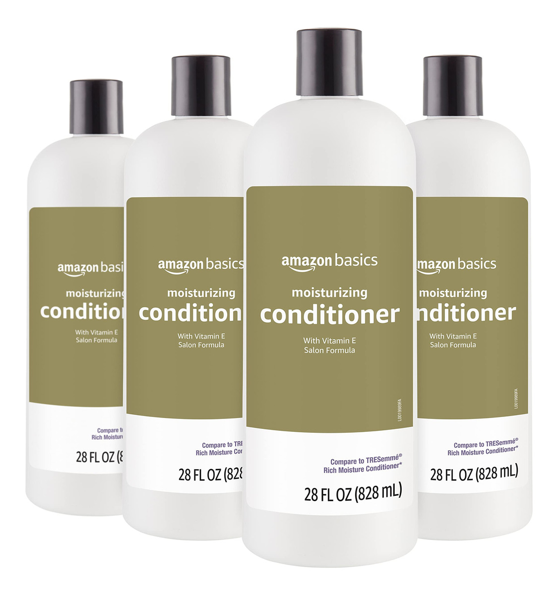 Condicionador Amazon Basics Moisture Rich, 28 fl oz (pacote com 4) — Quatro frascos de 28 onças fluidas do condicionador Amazon Basics Moisture Rich — Feito com vitamina E — Livre de doador de formaldeído ou livre de hidantoína DMDM. Sem parabenos e ftalatos — Ajuda a restaurar a vitalidade e deixa os cabelos secos e danificados macios sem sobrecarregá-los. Este produto não foi testado em animais. Feito nos EUA com componentes americanos e estrangeiros. – Se você gosta do condicionador Tresemme Rich Moisture, convidamos você a experimentar o condicionador Amazon Basics Moisture Rich – “Alexa, reordene o Amazon Basics Conditioner”.
