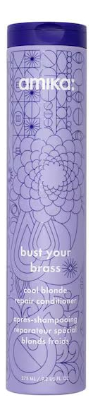 amika bust your brass cool blonde repair conditioner, 275ml – Tones brassiness – Moisturizes dry, brittle hair – Repairs and strengthens hair