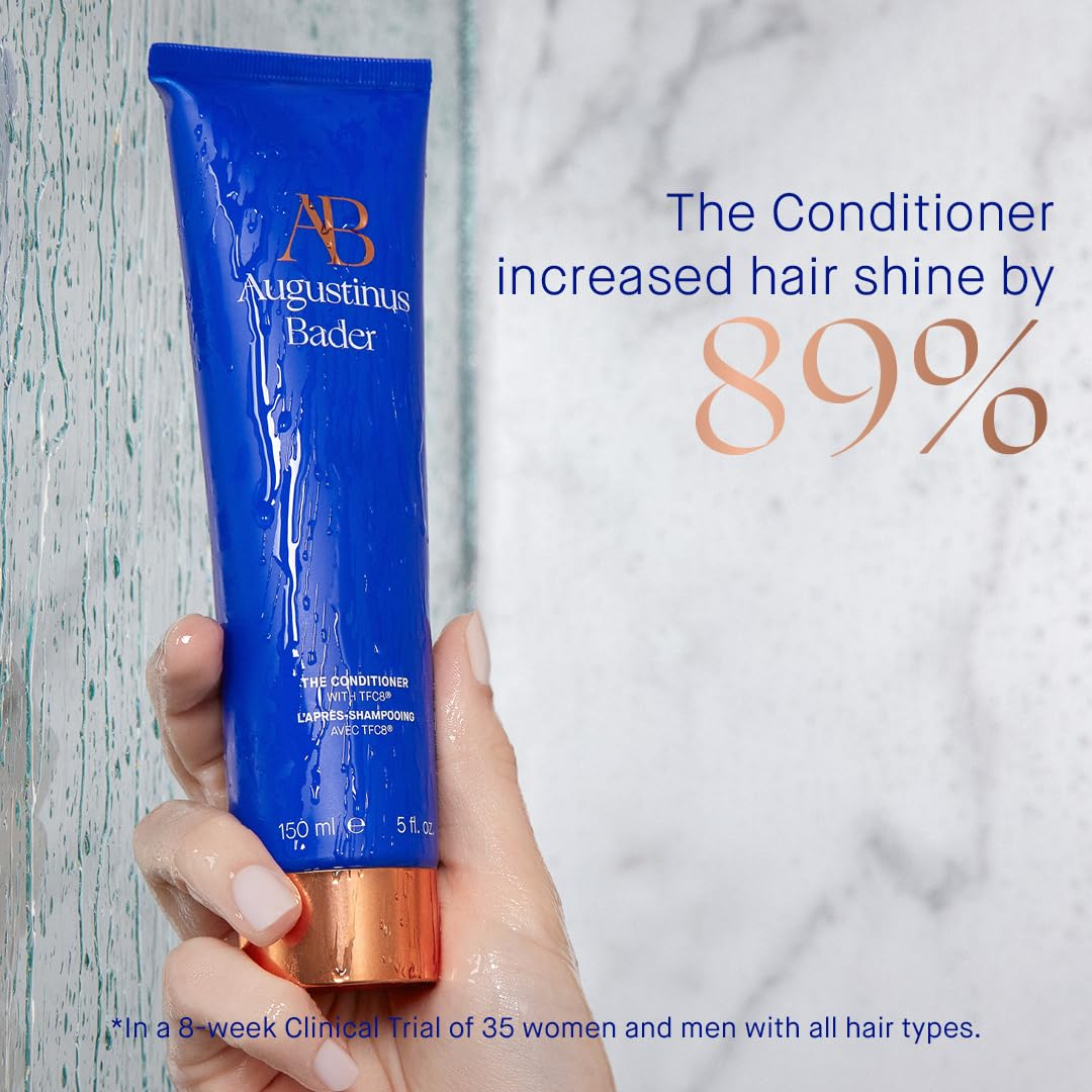 – O que é: Um condicionador Augustinus Bader com uma fórmula inovadora que reabastece o cabelo e o couro cabeludo enquanto fortalece e renova os fios para combater quebras e sinais de danos