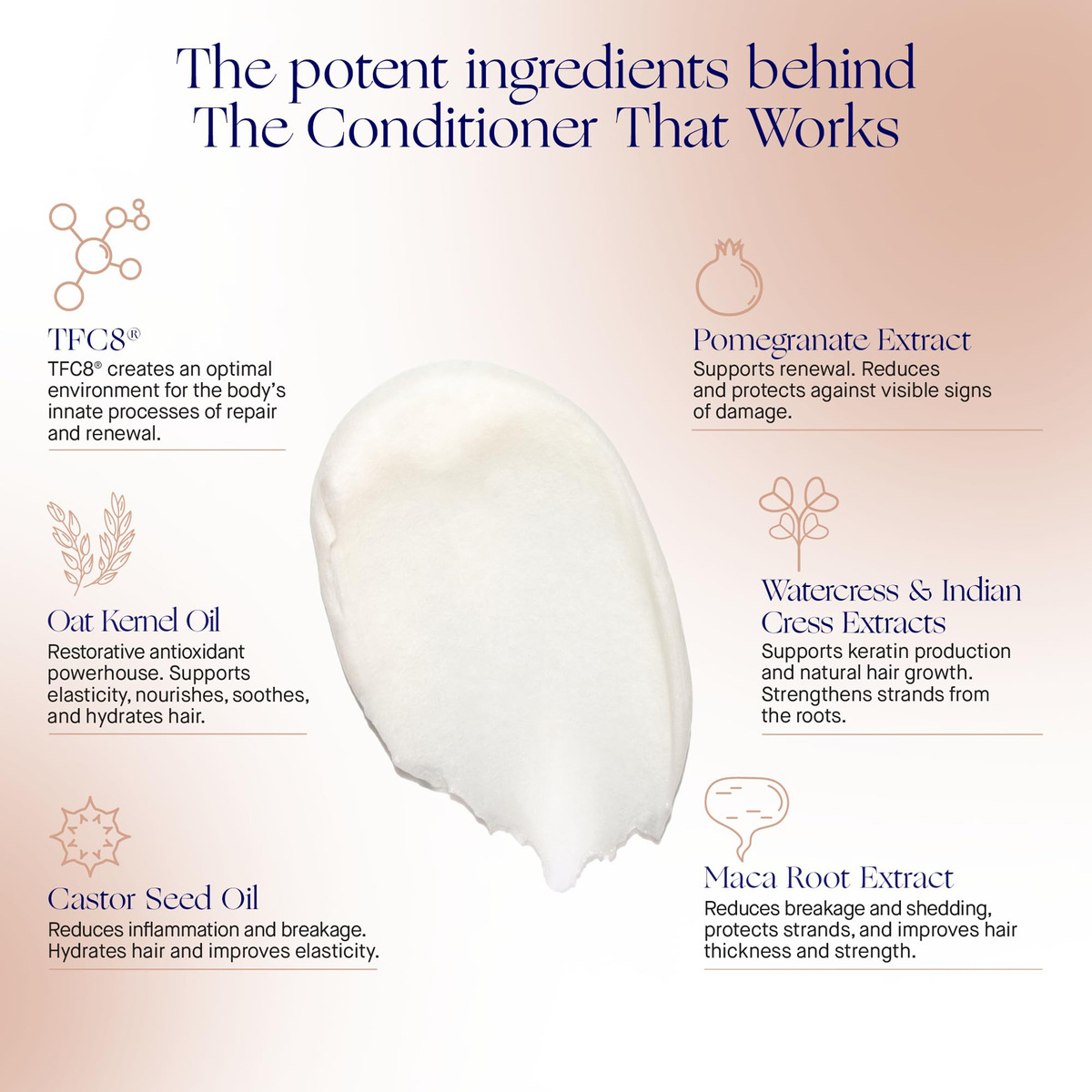 – É bom saber: seguro de cor, vegano, sem glúten, OGM, parabenos, silicones, fragrâncias, SLS, SLES, DEA, metais pesados, talco e petrolato/parafina/óleo mineral – O que faz: Alimentado pelo complexo TFC8 patenteado da marca, que é rico em proteínas naturais, antioxidantes e ácidos graxos ômega, esse condicionador diário hidrata, desembaraça, alisa e desfriza o cabelo enquanto ajuda a fortalecer os fios para aumentar o volume e o corpo