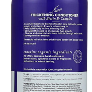 Nutra e hidrate profundamente os cabelos finos e finos com o condicionador espessante do complexo B de biotina da Avalon Organics. Feita com vegetais orgânicos e óleos essenciais, esta fórmula com pH balanceado condiciona o cabelo desde o folículo até toda a haste para revigorar o couro cabeludo e aumentar o volume do cabelo. Uma mistura cuidadosamente balanceada de biotina, saw palmetto, proteína de quinoa e vitamina E trabalha em harmonia para fortalecer os fios de cabelo e ajudar a construir o corpo, deixando o cabelo mais espesso e macio. Este condicionador orgânico certificado pela EWG é feito com ingredientes não transgênicos e sem parabenos, conservantes agressivos, cores ou fragrâncias sintéticas, ftalatos ou sulfatos. Também é vegano e não é testado em animais. Inclui um frasco de 32 onças de condicionador espessante do complexo B de biotina da Avalon Organics. Selecionados a partir de recursos naturais puros, os produtos para pele, cabelo e banho e corpo com certificação orgânica NSF da Avalon Organics estão profundamente enraizados em um profundo respeito pela terra. Combinando a ciência moderna com o mundo botânico, nos esforçamos constantemente para aperfeiçoar cada fórmula, desenvolver conhecimentos e oferecer inovação. Buscando os benefícios embelezadores escondidos em cada planta, a Avalon Organics desenvolve cuidadosamente fórmulas para não apenas nutrir o corpo, mas também nutrir a mente e a alma.