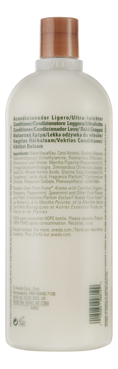 Condicionador leve AVEDA Rosemary Mint 33,8 onças,, (), 18084998199 – Tipo de produto: condicionador – Dimensões da embalagem do item: 8,305 cm L x 8,509 cm L x 25,4 cm H – Peso da embalagem do item: 1,07 kg – País de origem: Estados Unidos