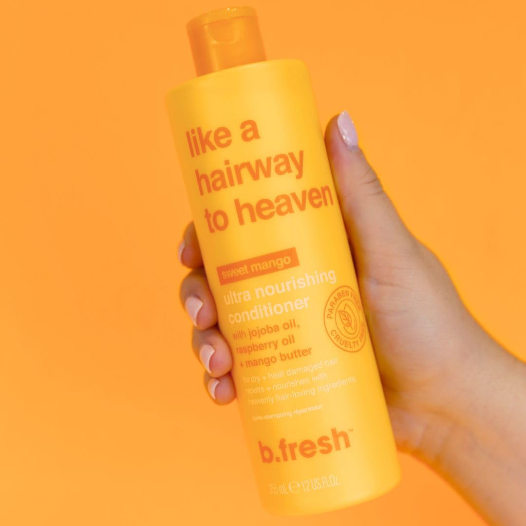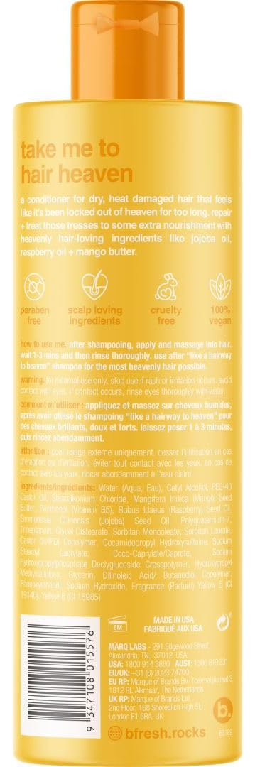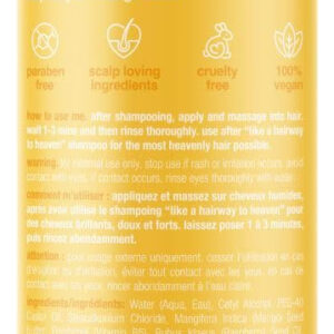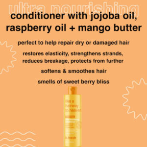 se seu cabelo está seco, danificado e precisa de um pouco de restauração celestial, este condicionador ultra nutritivo foi enviado diretamente do céu como resposta às suas orações. Uma mistura celestial de ingredientes que amam o cabelo: óleo de jojoba, óleo de framboesa e manteiga de manga nutre e hidrata profundamente o couro cabeludo e repara cabelos estressados. A mistura ajuda a restaurar a elasticidade, fortalecer os fios, reduzir a quebra, proteger de mais danos, suavizar e suavizar o cabelo em geral então é como o paraíso tocar. – Eu reparei e nutro cabelos secos ou danificados restaurando a elasticidade, fortalecendo o fios + reduzindo a quebra. Protejo de mais danos, amacio e suavizo – sou enriquecido com ingredientes ultra nutritivos que adoram o cabelo, óleo de jojoba, óleo de framboesa e manteiga de manga – tenho um aroma doce de manga de verão – sem parabeno. livre de crueldade. Ingredientes que adoram o cabelo. fragrância natural. ideal para veganos. – após lavar o cabelo, aplique e massageie no cabelo. espere 1-3 minutos e depois enxágue bem. Use depois o shampoo like a hairway to heaven para obter o cabelo mais celestial possível.
