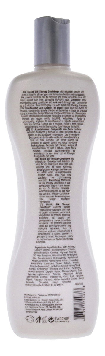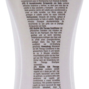 O condicionador BioSilk Silk Therapy com proteínas da seda penetra no cabelo para condicionar e criar um brilho incrível. Os filtros UV nos condicionadores protegem dos raios UVA/UVB prejudiciais. Contém extratos botânicos e ervas. Deixa o cabelo saudável e manejável.