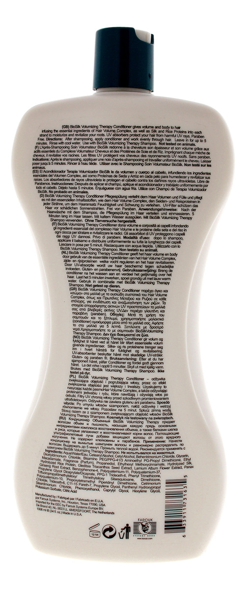O condicionador Volumizing Therapy da Biosilk fornece volume e corpo ao cabelo ao infundir os ingredientes essenciais do complexo de volume capilar, bem como proteínas de seda e arroz em cada fio para hidratar e revitalizar suas raízes.