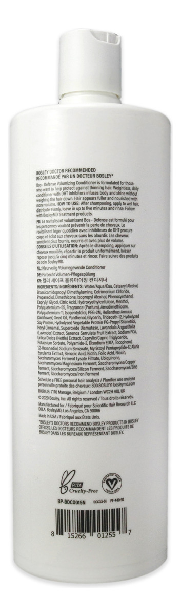 Key Features ——————– – Volumizing Formula: Specially designed to enhance hair volume and density, ideal for those concerned about thinning hair. – Daily Use: Formulated for daily application, suitable for all hair types, excluding color-treated hair. – Scalp Care: Provides nourishing benefits for both hair and scalp, promoting healthier-looking hair. – High-Quality Ingredients: Infused with premium ingredients for effective results without compromising hair health. – Color Safe: Although not for color-treated hair, it is safe for natural hair, ensuring no damage while delivering volume. Fact Sheet ——————– – Brand: Bosley – Product Type: Volumizing Conditioner – Size: 33 mL – Suitable for: Non color-treated hair – Usage: Daily use This high-quality volumizing conditioner by Bosley is an essential addition to your hair care routine. Designed for individuals looking to combat thinning hair, it nourishes and revitalizes both hair and scalp while enhancing volume. With a formulation crafted for daily use, it effortlessly integrates into your regimen, making hair feel thicker and fuller without any damage. Whether youre looking for a boost in volume or a solution to thinning hair, this conditioner acts as a protective barrier, ensuring your hair remains healthy and vibrant. Rediscover the joy of rich, voluminous hair with Bosleys trusted expertise in hair care.
