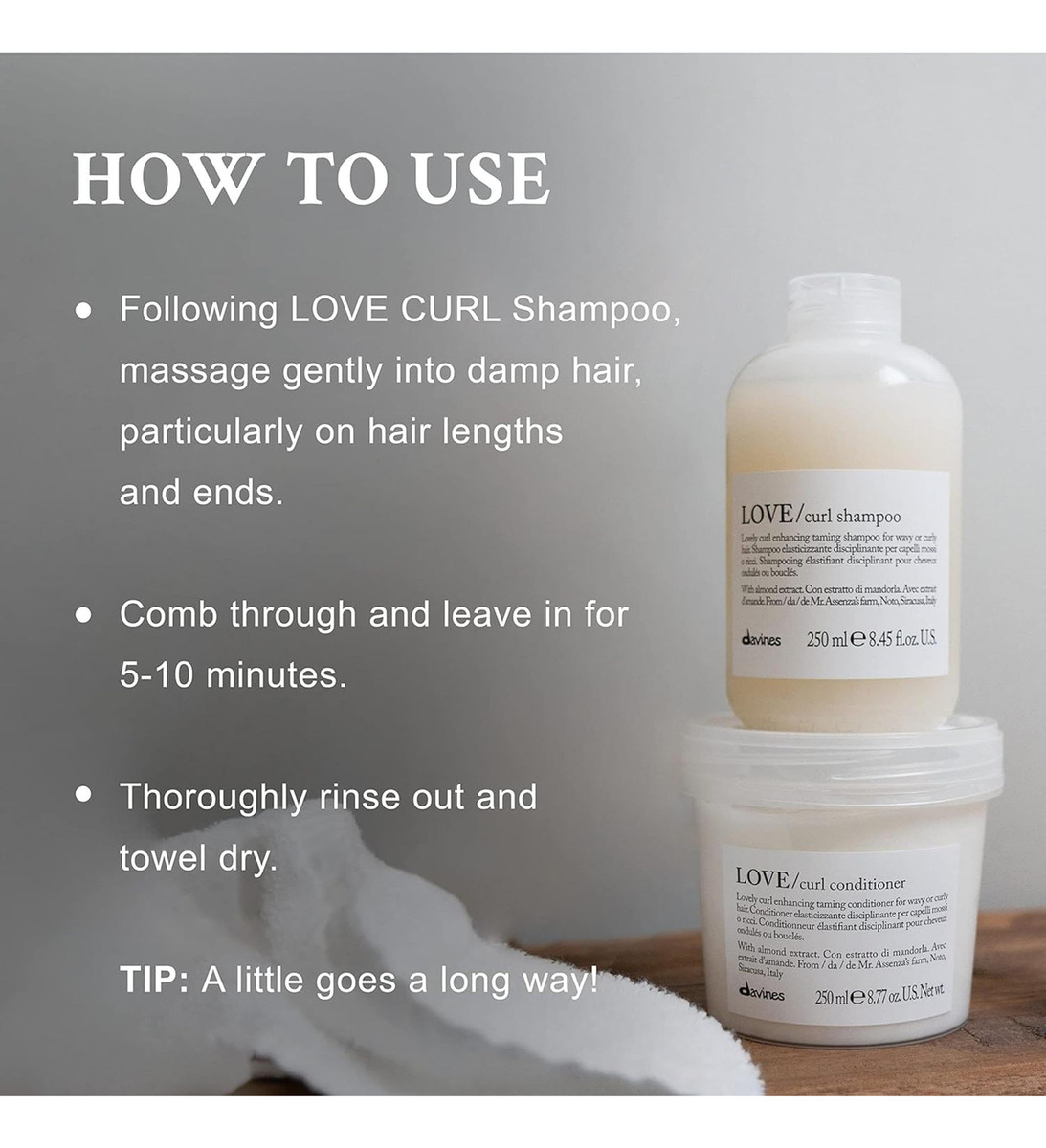 Condicionador Davines Love Curl, 2,5 ml — Define os cachos naturais — Facilita o penteado e o desembaraço — Dá brilho e corpo
