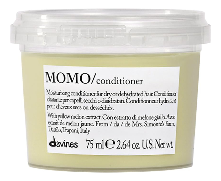 Condicionador Davines Momo, 2,5 fl. oz. — Hidratante para cabelos secos — Desembaraça e adiciona hidratação — Suaviza e seda