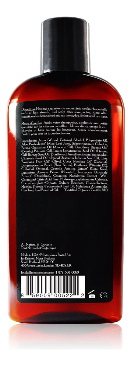 Condicionador de cabelo revitalizante masculino Brickell para homens, condicionador de cabelo nutritivo natural e orgânico, restaura o brilho e a umidade, 8 onças, perfumado, nova fórmula – O que faz: este condicionador de cabelo natural e orgânico para homens usa uma base espessa de aloe para fornecer ingredientes naturais e potentes ao cabelo que o deixam com uma aparência mais cheia, saudável e brilhante. – Para quem é: Homens de qualquer idade com qualquer tipo de cabelo, especialmente aqueles com queda de cabelo ou cabelos que precisam ser revitalizados. Seguro para cabelos tingidos. – Como funciona: a babosa fornece uma onda de hidratação ao cabelo, dando volume e volume aos fios quase instantaneamente. O óleo de abacate hidrata e fortalece. – Ingredientes principais: ingredientes naturais e orgânicos certificados, incluindo: Aloe Vera, vitamina E, óleo de melaleuca, hortelã. 99% naturais, 72% orgânicos. – Quem somos: A Brickell cria produtos de cuidados e cuidados com a pele para homens usando ingredientes orgânicos naturais e certificados. Nossos produtos são vendidos em mais de 100 países e apareceram na GQ, Men's Health, Men's Journal e outras revistas masculinas populares.