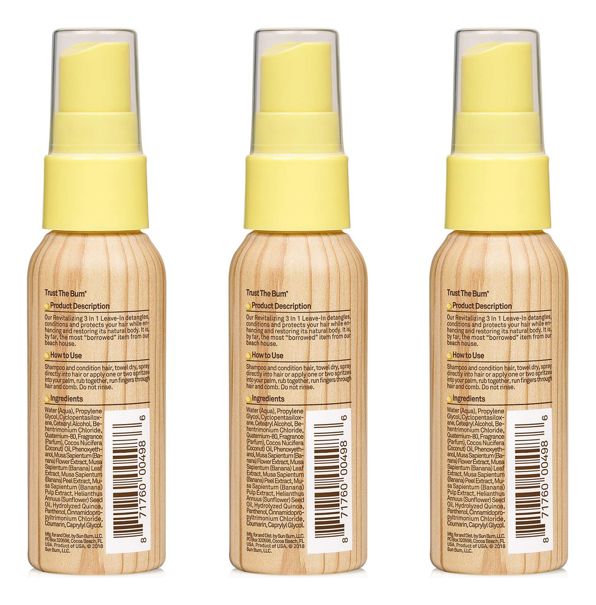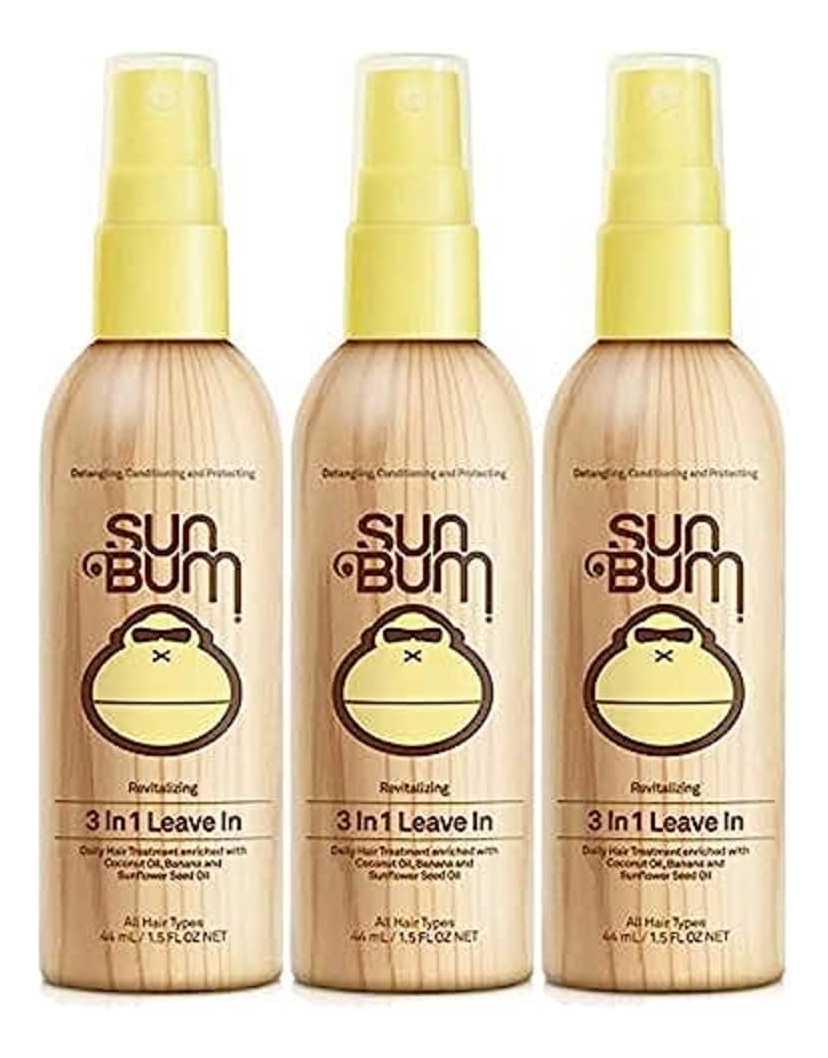 Condicionador Leave In Hair Sun Bum Revitalizante 3 em 1, 1,5 onças, pacote com 3 — SPRAY CONDICIONADOR DIÁRIO LEAVE IN: inclui 3 frascos de spray desembaraçador de cabelo tamanho viagem para mulheres, crianças e homens de todos os tipos e texturas de cabelo com cabelos lisos, encaracolados, naturais ou coloridos. – Controla o frizz e evita pontos mortos: condiciona com óleo de coco e óleo de semente de girassol para aumentar a hidratação e o brilho. – REVITALIZA E REFRESCA O FRIZZ CABELO: melhora e restaura o corpo natural do cabelo, deixando-o macio, brilhante e cheirando como nosso perfume exclusivo Sun Bum. – LIVRE DE CRUELDADE E INGREDIENTES AMIGÁVEIS: ingredientes veganos formulados para condicionar o cabelo sem causar irritação na pele; sem parabenos, sem corantes, sem silicone, sem glúten e sem crueldade. – Fácil aplicação: borrife no cabelo úmido ou seco e depois penteie ou mexa com os dedos para obter cabelos hidratados, macios e sem emaranhados. Para nós apertados e complicados, borrife generosamente e use um pente de dentes largos.
