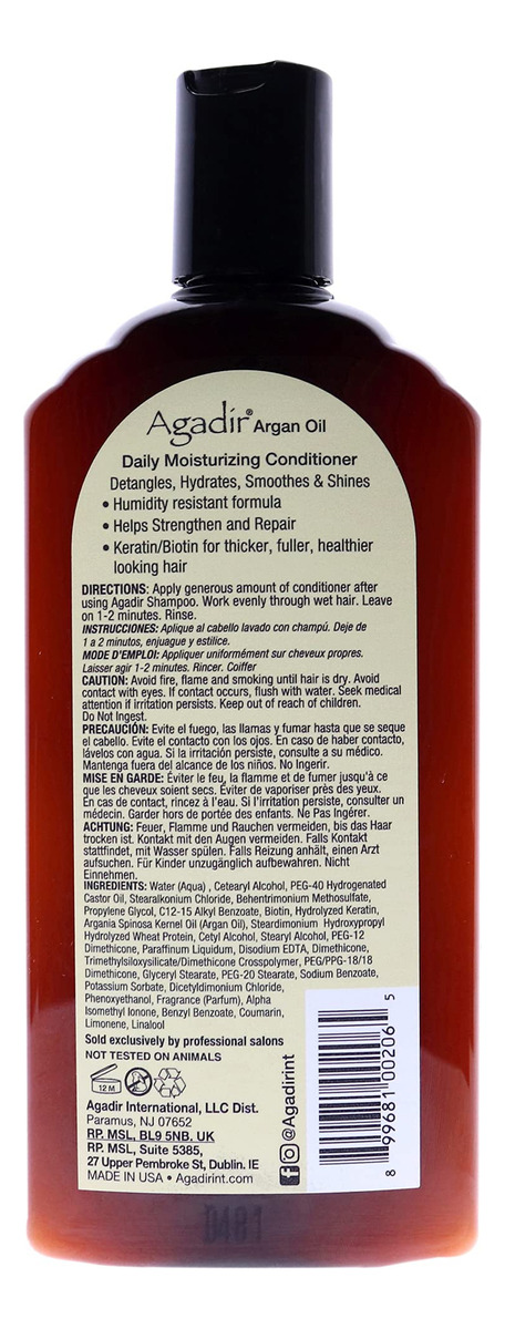 Condicionador hidratante diário com óleo de argão AGADIR, 12,4 fl oz — Este condicionador é livre de sulfatos e parabenos, com antidesbotamento para uma coloração de cabelo longa e duradoura — Ele repara e fortalece os cabelos danificados com uma fórmula resistente à umidade e leve com protetor solar protetor