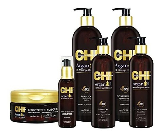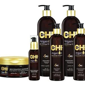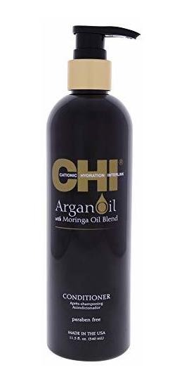 Condicionador de óleo de argan CHI, 11,5 oz, preto — Infunde vitaminas e óleos nutritivos no cabelo para um acabamento suave e macio — Protege contra o estilo térmico e os raios UV — Melhora a força e a elasticidade