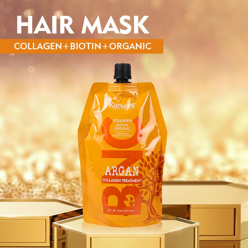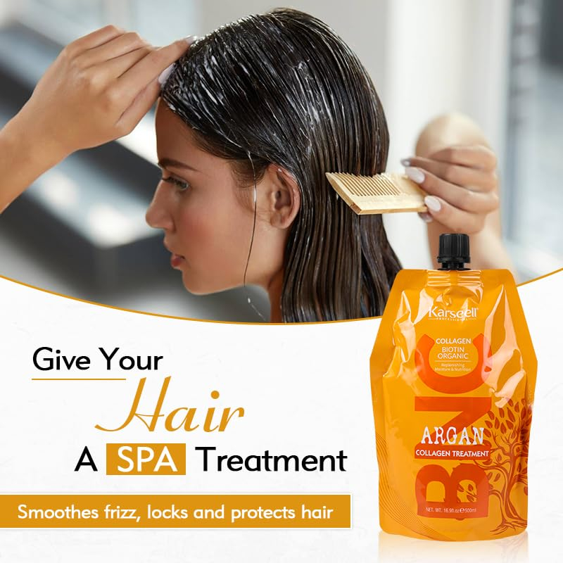 Tratamento capilar Karseell BNC com colágeno 16,9 onças, 500 ml, condicionador de reparos profundos, óleo de argão, queratina, tratamento capilar para cabelos secos e danificados, cabelos encaracolados, cabelos descoloridos, todos os tipos de cabelo