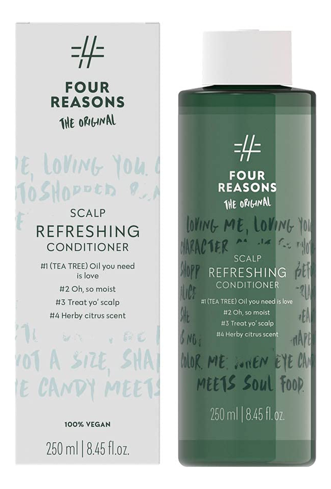 O condicionador refrescante de óleo de melaleuca hidrata e ajuda no couro cabeludo escamoso e na coceira. O mentol refresca o couro cabeludo e deixa uma sensação agradável e fresca. Nutre e fortalece o cabelo tornando-o brilhante, macio e flexível. Um aroma refrescante de ervas e limão! – REFRESQUE SEU COURO CABELUDO SECO E ESCAMOSO COM COCEIRA COM UM CONDICIONADOR REFRESCANTE DE MELALEUCA: ofereça o cuidado mais suave ao seu couro cabeludo sensível com nosso condicionador ultra refrescante, hidratante e calmante que rejuvenescerá o couro cabeludo escamoso. Combine com o shampoo refrescante Four Reasons Original Scalp para obter melhores resultados. – Alimentado pela melhor ação calmante do óleo de melaleuca: amplamente elogiado por suas excelentes propriedades calmantes, restauradoras e calmantes, não é de admirar que nosso condicionador de óleo de melaleuca ajude a equilibrar e revitalizar até mesmo o couro cabeludo mais escamoso – ELIMINE COCEIRA, ESCAMAÇÃO E CASPA OLEOSA: estressores ambientais e produtos capilares comuns podem deixar seu couro cabeludo está com coceira, seco, escamoso e com impurezas. Confie no condicionador anti-coceira da Four Reasons e deixe-o remover suavemente toda a coceira, descamação, caspa e desconforto irritantes. Adequado para couro cabeludo oleoso. — FÓRMULA NUTRITIVA PARA COURO CABELUDO SAUDÁVEL E CABELOS LINDOS: Não importa se você está lidando com couro cabeludo seco, couro cabeludo excessivamente oleoso ou caspa persistente, nossos condicionadores reequilibrantes oferecem o que você precisa. Basta aplicar nos cabelos limpos e úmidos, massagear no couro cabeludo, deixar agir por alguns minutos e enxaguar abundantemente. Seu cabelo ficará macio, brilhante e flexível com um aroma refrescante de ervas e limão. – EMBALAGEM 100% VEGANA, LIVRE DE CRUELDADE E RECICLÁVEL: Na Four Reasons, estamos comprometidos em criar produtos de cuidado capilar de primeira linha sem sobrecarregar nosso planeta. Nossas fórmulas 100% veganas e livres de crueldade, juntamente com nossas embalagens recicláveis, atendem a esse mesmo objetivo. Uma excelente escolha ecológica para homens, mulheres e cabeleireiros profissionais!