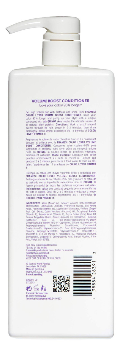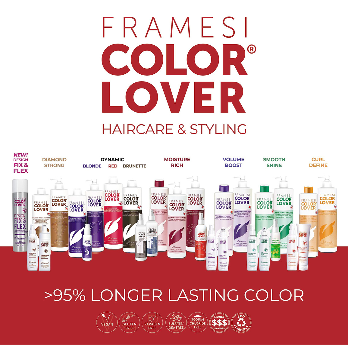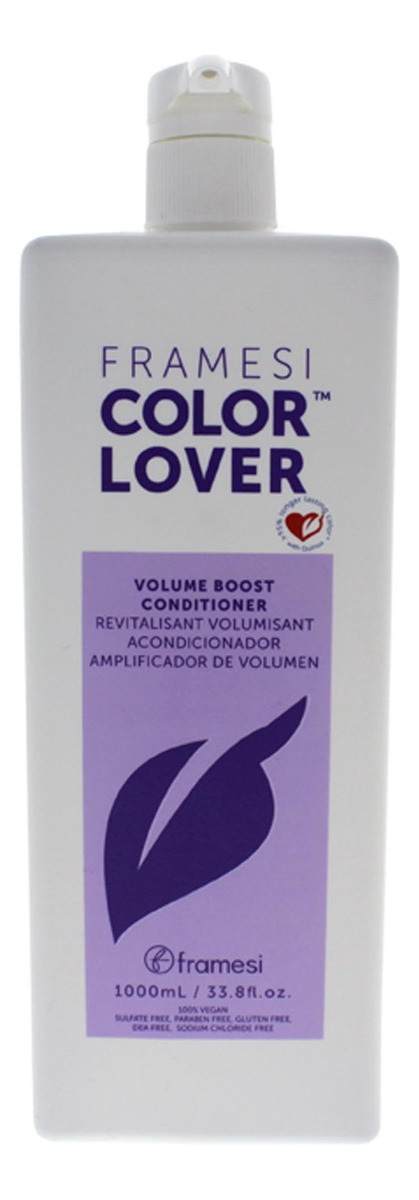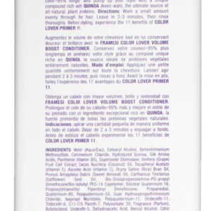 Condicionador Framesi Color Lover Volume Boost, 33,8 fl oz, condicionador volumizante sem sulfato com quinoa e óleo de coco, cabelos tingidos — Este condicionador oferece condicionamento leve com toque vidrado e brilho polido do meio às pontas, preservando a cor do cabelo — Formulado para uso diário