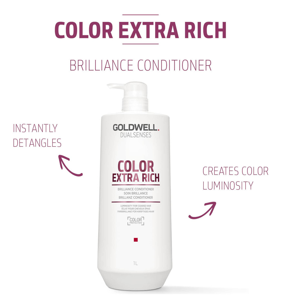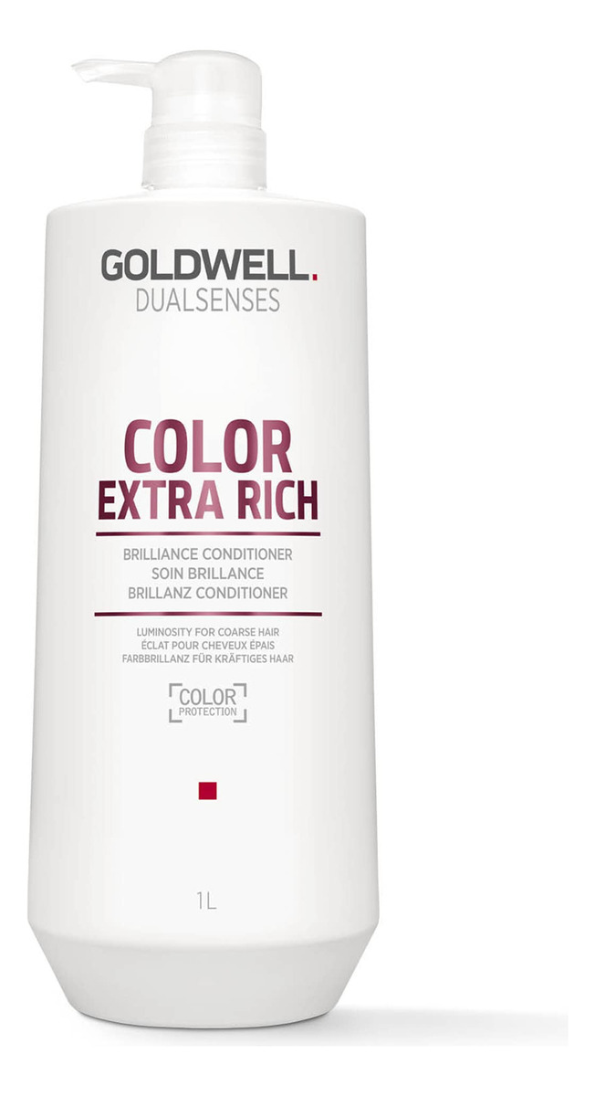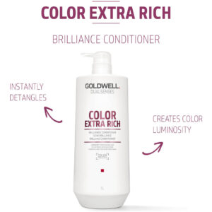 Condicionador Goldwell Dualsenses Color Extra Rich Brilliance 1L – Este condicionador desembaraça instantaneamente o cabelo, intensifica o brilho da cor – Um spray de soro leave-in que retém a cor – As tecnologias mais inovadoras – Tipo de cabelo: tratado com cor