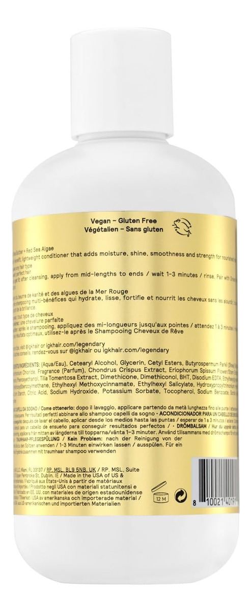 Condicionador de cabelo IGK LEGENDARY Dream | Saudável + Hidratado + Brilhante | Vegano + Sem crueldade | 8 onças – A manteiga de karité retém a umidade, mantendo o cabelo macio e macio – As algas marinhas vermelhas proporcionam hidratação, brilho e elasticidade – Segura para cabelos coloridos e tratados quimicamente