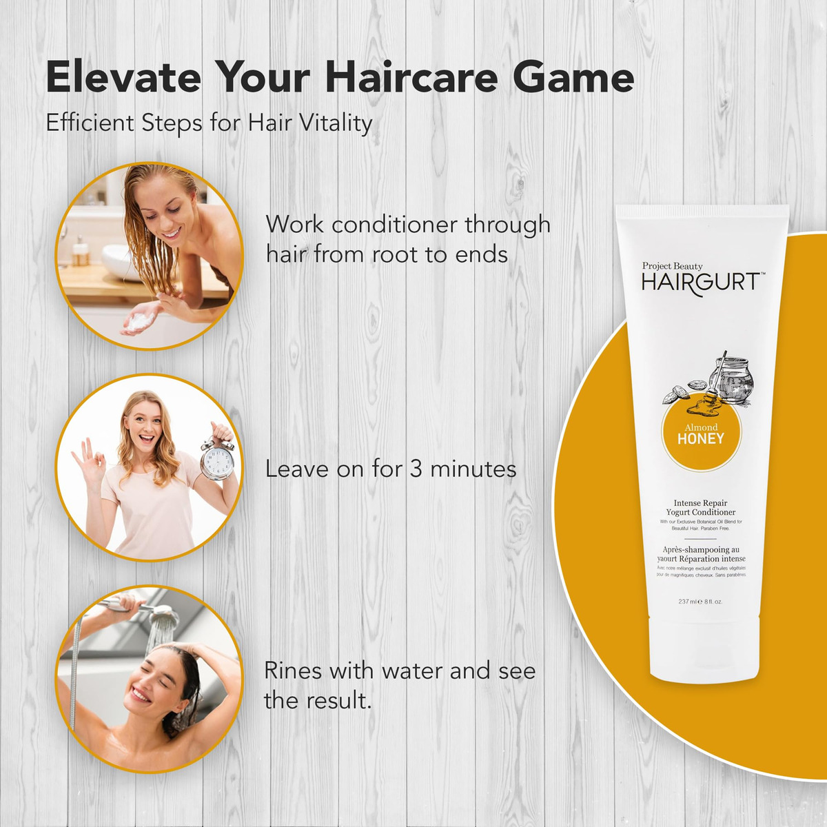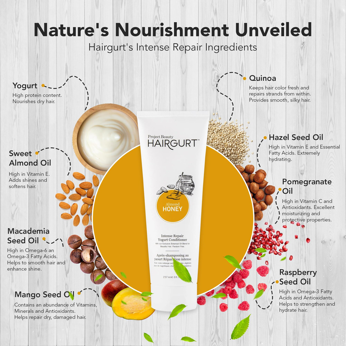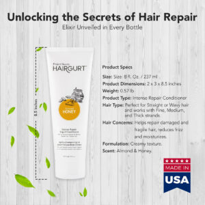 Nosso condicionador Intense Repair fortalece e repara seu cabelo diariamente. Empoderado com extrato de iogurte, quinoa, manteiga de karité e nossa mistura botânica exclusiva, o condicionador Hairgurt Intense Repair oferece uma experiência luxuosa no chuveiro para cabelos mais saudáveis e fortes. O condicionador Hairgurt Intense Repair Almond Honey usa extrato de iogurte, manteiga de karité e uma mistura botânica especial para hidratar e fortalecer os fios de cabelo para minimizar a quebra, restaurar a vitalidade dos cabelos opacos e melhorar o brilho. Um aroma delicioso de amêndoa e mel vem com um aumento imediato de umidade para dar elasticidade, corpo e brilho. Uma fórmula leve e cremosa funciona horas extras para amaciar e desembaraçar o cabelo. Projetado para infundir instantaneamente o cabelo com hidratação intensa para reduzir melhor a quebra. É um reparador capilar que trata você com carinho. – Tipo de produto: condicionador de reparo intenso – Tipo de cabelo: perfeito para cabelos lisos ou ondulados e funciona com fios finos, médios e grossos. – Preocupações com o cabelo: ajuda a reparar cabelos danificados e frágeis, reduz o crespo e hidrata. – Formulação: textura cremosa. – Aroma: amêndoa e mel – The Kick Your Hair Needs: iogurte de reparação intensa. – O condicionador profundo de iogurte de reparação intensa é o que seu condicionador profundo o cabelo está esperando há muito tempo! Enriquecido com ingredientes naturais que fornecem a umidade de que seus folículos precisam, este condicionador profundo para cabelos secos e danificados é sua arma número um contra pontas duplas, cabelos secos e mechas opacas. – Cuidado especial para cabelos fabulosos: nosso condicionador para cabelos secos foi projetado para fornecer vitalidade e uma aparência brilhante que aumentará sua confiança. Não se preocupe: embora seja muito eficiente e luxuoso, nosso condicionador de cabelo para cabelos secos danificados é 100% livre de crueldade e não contém produtos químicos agressivos. – Fácil de aplicar: depois de lavar e enxaguar bem o cabelo, aplique uma quantidade generosa de nosso condicionador para cabelos secos danificados em todo o comprimento do folículo. Deixe-o agir no cabelo para garantir que você tire o melhor proveito de nossa incrível lista de ingredientes que inclui iogurte em pó, prebióticos, quinoa, manteiga de karité e nossa mistura de óleos botânicos. Enxágue bem e desfrute de um cabelo macio e delicioso! – Um condicionador para todos: se você gosta de mechas encaracoladas ou lisas, cabelos danificados, oleosos ou secos, nosso tratamento com condicionador profundo está aqui para ajudar! A fórmula leve fornece hidratação profunda sem sobrecarregar o cabelo, permitindo que você o estilize da maneira que quiser! – Descubra a coleção: use nosso condicionador de amêndoa e mel junto com o shampoo e a máscara capilar Hairgurt Intense Repair Yogurt correspondentes para obter um efeito completo! Veja seu cabelo se transformar em mechas incríveis, deliciosas, lisas e grossas e deixar o frizz e as pontas duplas para trás para sempre.