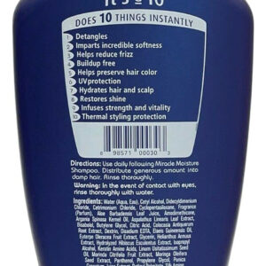 É um condicionador diário de 10 milagres de 33,8 onças – Repara os danos diariamente com uma fórmula limpa de enxágue que penetra na haste capilar para obter o máximo de umidade sem causar peso. – Utiliza extratos naturais como a vitamina C: um antioxidante que defende a força e a beleza naturais dos cabelos – Extrato de linhaça: acalma o couro cabeludo e deixa o cabelo macio e encorpado – Aloe Vera: um selante e protetor solar natural à base de umidade Extrato de semente de flor: protetor solar natural que protege contra o desbotamento da cor e/ou o bronzeamento