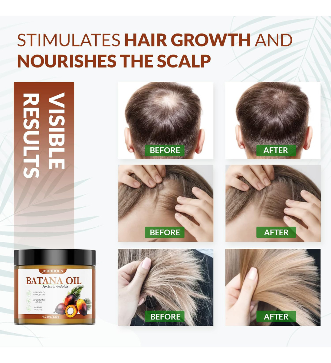 Mergulhe no presente orgânico do Óleo de Batana, vindo de Honduras, um verdadeiro milagre para o seu cabelo. Extraído da noz da palmeira sul-americana, esse óleo refinado é sinônimo de cuidado puro e orgânico. Mais do que apenas um óleo, o óleo de Batana é um catalisador de crescimento, um hidratante suave e um símbolo do cuidado tradicional do cabelo. 100% orgânico, sem aditivos, oferece ao cabelo a forma mais pura de nutrição. Deixe o óleo de batana redefinir a beleza do seu cabelo, revelando brilho e vitalidade naturais. – Óleo de batana 100% orgânico e natural: proveniente de Honduras, nosso óleo de batana é 100% orgânico, livre de aditivos e puro. – Estimula o crescimento do cabelo: com uma fórmula única, o óleo de batana nutre profundamente o cabelo, promovendo o crescimento para cabelos mais grossos e cheios. – Fortalece e protege: o óleo de batana pode elevar a resiliência do cabelo hidrata, reduz a quebra e aumenta a elasticidade para manter os fios mais saudáveis. – Hidratação natural: o óleo de batana hidrata suave e profundamente, deixando o cabelo macio, macio, e naturalmente radiante. – Cuidado tradicional do cabelo: enraizado em tradições centenárias, o óleo de batana é um tônico puro e tradicional para o cabelo. – Cuidado com pessoas com couro cabeludo oleoso. Não é adequado para pessoas com dermatite seborreica.