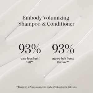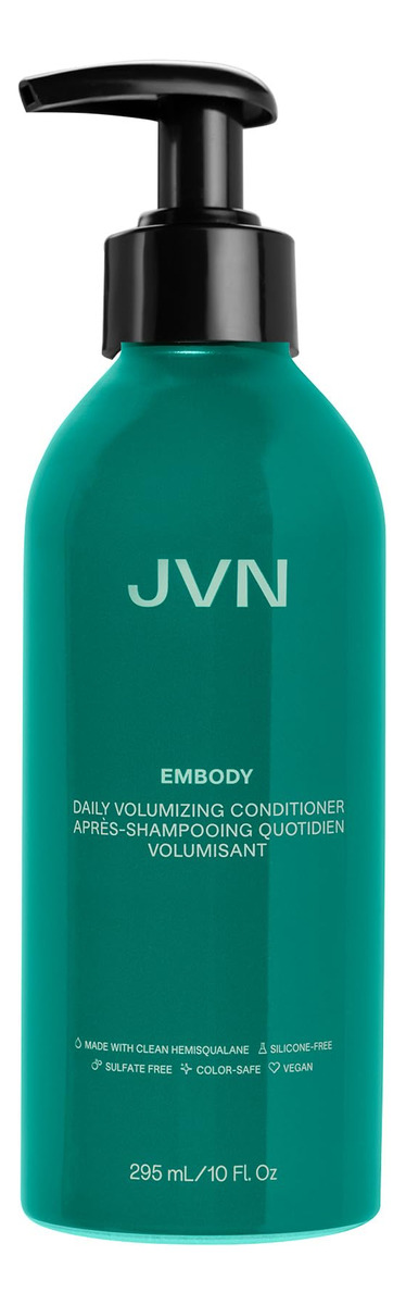 Condicionador Volumizador Diário JVN Embody – Adiciona corpo, força e umidade. Um condicionador limpo que aumenta o volume que adiciona plenitude, desembaraça suavemente e restaura o brilho sem acumular ou deixar o cabelo pesado. Funciona para melhorar a espessura e a resiliência, ao mesmo tempo que adiciona elasticidade e vitalidade aos fios flácidos. A textura leve e cremosa satura o cabelo, mas o enxagua. Ótimo para uso diário em todos os tipos de cabelo, incluindo cabelos tingidos. Reduz a quebra do cabelo em 51% 93% concordam que o cabelo fica mais espesso *Com base em um estudo de 21 dias com 40 indivíduos, o uso diário 93% viu menos queda de cabelo *Com base em um estudo de 21 dias com 40 indivíduos, o uso diário A densidade do cabelo melhorou visivelmente em 9% *Em um estudo controlado versus um xampu não condicionador, após um uso ADEQUADO PARA: cabelos finos, médios, grossos, lisos, ondulados, encaracolados e crespos. ESPECIALMENTE BOM PARA: Cabelo fino, cabelo ralo, cabelo flácido ou liso PERFUME: notas ricas de sândalo e âmbar são acentuadas por jasmim exuberante, cassis cintilante e bergamota radiante. INGREDIENTES: HEMISQUALANO – Melhora a saúde e a força do cabelo instantaneamente e ao longo do tempo. Suaviza, fortalece, protege a cor e reduz os danos. BIOTINA – Também conhecida como vitamina B7, ajuda a melhorar a espessura do cabelo. EXTRATO DE BAMBU — Rico em sílica natural, adiciona volume e brilho. COMO USAR – Após lavar o cabelo, esprema o excesso de água e aplique uniformemente no cabelo, depois enxágue. Deixe agir um pouco mais se precisar. – Impulsione seu cabelo – Melhore a plenitude, o corpo e a força com nosso condicionador limpo e inovador com infusão de biotina e hemisqualano para fios fortes, grossos e brilhantes. Perfeito para todos, especialmente aqueles com cabelos finos, finos e cabelos que precisam de plenitude. – Principais benefícios – Aumenta a espessura e suaviza para facilitar o desembaraço. Também ajuda o cabelo a parecer mais denso mesmo após o primeiro uso e fornece hidratação leve que não deixa o cabelo pesado. É o condicionador perfeito para pessoas com cabelos finos, finos, secos e crespos. O perfume tem notas ricas de sândalo e âmbar, acentuadas por jasmim exuberante, cassis cintilante e bergamota radiante. – Ingredientes limpos – Contém biotina, também conhecida como vitamina B7, conhecida por estimular a produção de queratina e melhorar a espessura do cabelo. O hemisqualano ajuda a melhorar a saúde e a força do cabelo instantaneamente e ao longo do tempo. O extrato de bambu é rico em sílica natural para aumentar o volume e dar brilho saudável. Este condicionador é livre de silicone e sulfato, não contém cores, é livre de crueldade e vegano. – Como usar – Aplique nos comprimentos médios e nas pontas recém-lavados, adicionando mais se precisar para que nenhum fio fique para trás! Enxaguar. DICA JVN: Tem travas mais longas ou mais grossas? Penteie suavemente com um pente de dentes largos após a aplicação para garantir uma distribuição uniforme, o que leva à máxima maciez sedosa. – Come As You Are: a JVN permite que todos que a usam encontrem seu melhor cabelo, se sintam bonitas e mostrem ao mundo que podem ter uma aparência melhor do que nunca, confiando em sua escolha de trazer beleza limpa aos cabelos. – Jonathan Van Ness; Como visto no programa vencedor do Emmy, Queer Olho!