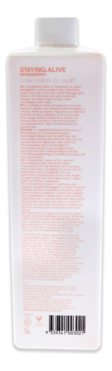 Condicionador Kevin Murphy Staying.Alive Leave-in para unissex – Condicionador de 33,6 onças – Foi projetado para eliminar gradualmente os tons de amarelo dos cabelos loiros e prateados com base violeta exclusiva – É ideal para uso diário – Desliza facilmente no cabelo – O país de origem são os Estados Unidos