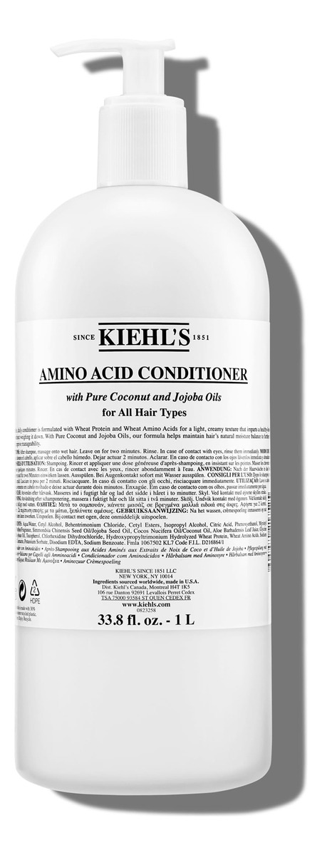 Condicionador de aminoácidos Kiehl's, tratamento fortalecedor e hidratante para o cabelo, com aminoácidos, jojoba e óleo de coco para melhorar a maleabilidade e aumentar o brilho – Bomba de 33,8 fl oz /1 litro – Um condicionador de cabelo diário suave com uma textura leve e cremosa que suaviza facilmente o cabelo, nutrindo-o e limpando-o. Suave e delicado o suficiente para ser adequado para todos os tipos de cabelo. – Seu cabelo ficará macio, flexível e gerenciável, ao mesmo tempo em que será fortalecido e hidratado por dentro. O resultado são cabelos brilhantes e com aparência mais saudável, sem nenhum peso. – Depois de lavar o cabelo, aplique o condicionador nos cabelos molhados, deixando agir por cerca de dois minutos antes de enxaguar bem. Para obter melhores resultados, use com o shampoo de aminoácidos Kiehl's. – Fórmula enriquecida com aminoácidos que limpam o cabelo, óleo de coco rico em ácidos graxos usado para nutrir e hidratar o cabelo, óleo de jojoba para nutrir e suavizar. – Conteúdo: 1 condicionador de aminoácidos Kiehl's, tratamento fortalecedor e hidratante, com aminoácidos, óleo de jojoba e coco para melhorar a capacidade de gerenciamento e aumentar o brilho, Adequado para todos os tipos de cabelo.