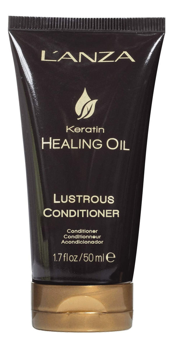 O condicionador lustroso L'ANZA Keratin Healing Oil para cabelos danificados, nutre, repara e aumenta o brilho e a força do cabelo para uma aparência sedosa perfeita, sem sulfato, sem parabenos, tamanho de viagem (1,7 fl oz) – Natural – Sem parabenos – Adiciona brilho
