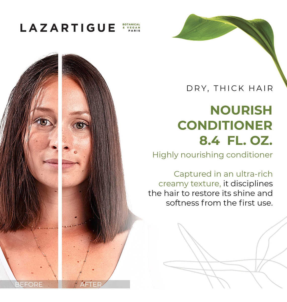 Rejuvenesça cabelos secos e ásperos com o condicionador Lazartigue Nourish.
