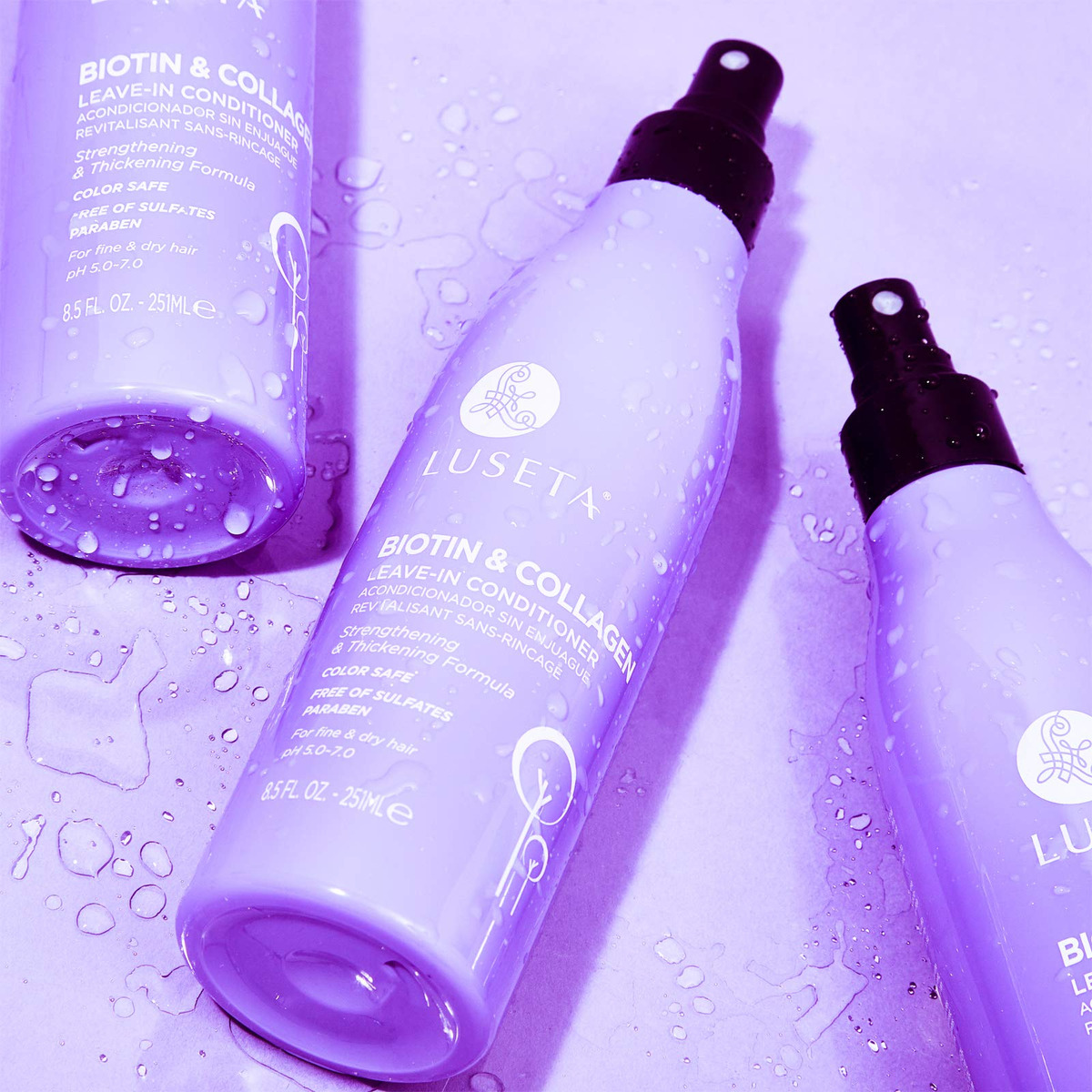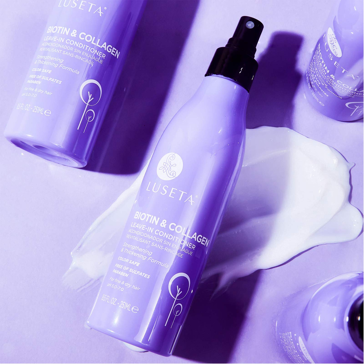 Condicionador leave-in de biotina e colágeno 8,5 ml de onças sem sulfato, fosfato e parabeno Fortalece e fortifica a haste capilar Ajuda a engrossar e texturizar Adiciona volume e dimensão para uma aparência mais completa – CONDICIONADOR LEAVE-IN FORTALECEDOR: Nosso condicionador Leave-in Luseta repara e fortalece seu cabelo, reduz a quebra e dá força aos fios – Deixe em condicionador PARA CABELOS SECOS E DANIFICADOS: Nossos produtos apresentam ingredientes que hidratam, nutrem, protegem e reabastecem o cabelo, contêm proteína biotina para ajudar a prevenir a quebra do cabelo e suaviza o cabelo; sela a cutícula e controla o crespo, melhorando visivelmente o cabelo danificado – VOLUMIZA, LIMPA E HIDRATA: dê ao cabelo mais corpo e elasticidade, com nosso condicionador rico em nutrientes que deixa seu cabelo tão delicioso, macio e elástico que você adorará passar os dedos pelas mechas lisas e elegantes; limpa o cabelo após muita exposição no mundo exterior – COMO USAR: Aplique borrife uma pequena quantidade no cabelo molhado ou seco e depois penteie ou despenteie com os dedos para obter mechas hidratadas, macias e sem emaranhados. Para nós apertados e complicados, borrife generosamente e use um pente de dentes largos – NUTRITIVO E HIDRATANTE: este produto é ótimo para cabelos secos e danificados e é benéfico para nutrir e hidratar o cabelo.