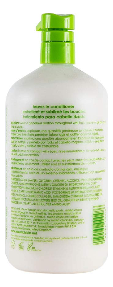 Condicionador leave-in infantil Mixed Chicks — elimina o frizz e define os cachos, 33 fl.oz. — Bloqueia o frizz e define os cachos — Proporciona uma fixação suave ao estilo — o cabelo é convidativo ao toque, pois define e retém a umidade em cada cacho. — Sem corantes
