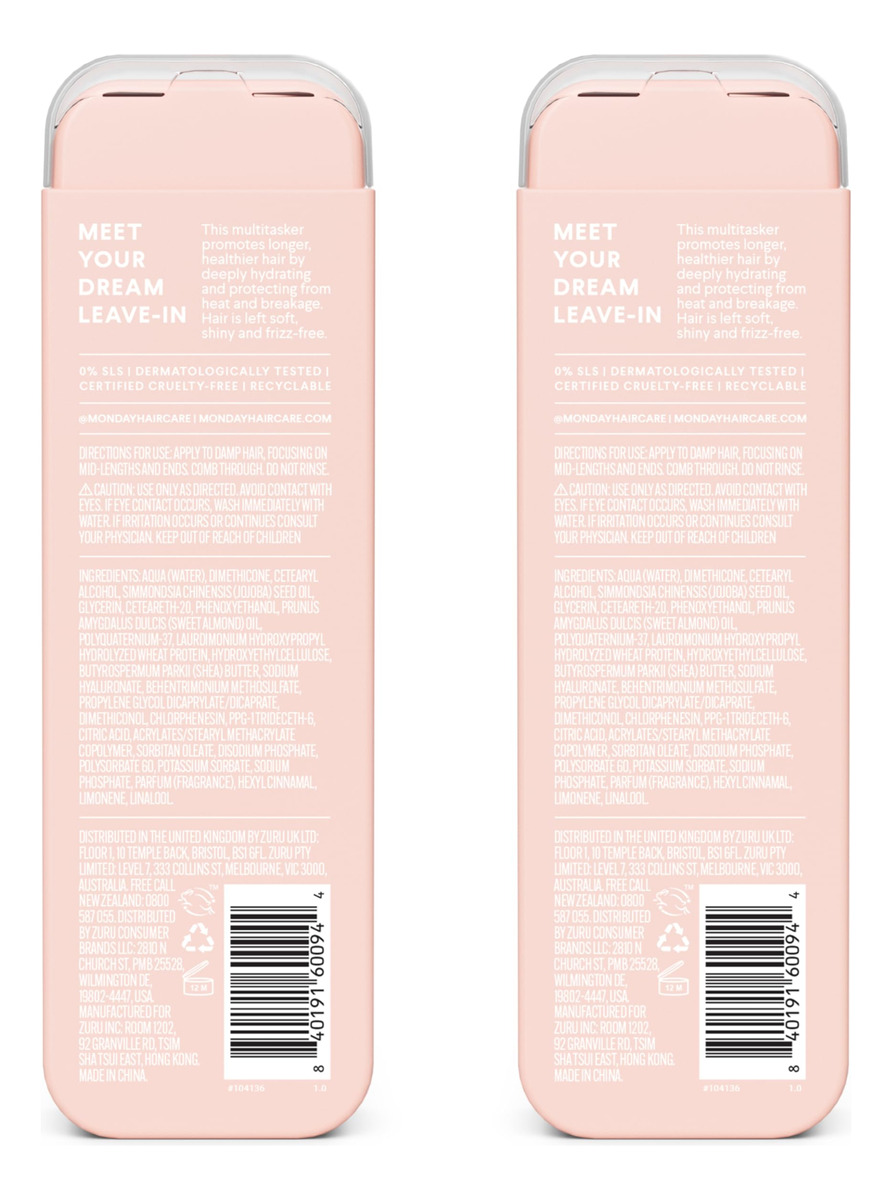 Pacote duplo do condicionador MONDAY HAIRCARE Moisture Leave-in de 5 onças — Condicionador Moisture Leave-in: o condicionador Monday Haircares Leave-In é um condicionador multitarefa diário que promove cabelos mais longos e saudáveis, além de proteger do calor e da quebra. Aplique após a lavagem e penteie como de costume para cabelos brilhantes e sem crespos. – FÓRMULAS MODERNAS: Nossas fórmulas premium são dermatologicamente testadas, têm pH balanceado e livres de sulfatos e parabenos. Em vez disso, usamos ingredientes naturais hidratantes, como óleo de coco, manteiga de karité, ácido hialurônico e queratina, para nutrir e restaurar. – PREMIADO: Nossa linha de produtos para o cabelo tem 16 grandes prêmios de beleza, incluindo o prêmio Allure 2023 Best of Beauty, o prêmio InStyle 2022 Best Beauty Buy, o Glamour 2021 Beauty Award e o Cosmo 2021 Holy Grail Beauty Award. – CERTIFICADO DE CRUELDADE: todos os produtos da Monday são aprovado como livre de crueldade pelo programa Leaping Bunny da Cruelty Free International. Também temos orgulho de sermos reconhecidos pela PETA como uma marca que não testa em animais. – GARRAFAS 100% RECICLÁVEIS: nossas pequenas garrafas rosa não só ficam ótimas em seu banheiro, mas também são feitas de plástico 100% reciclável para ajudar a minimizar a pegada de carbono e reduzir o aterro sanitário. Uma vitória para seu cabelo e para o meio ambiente.