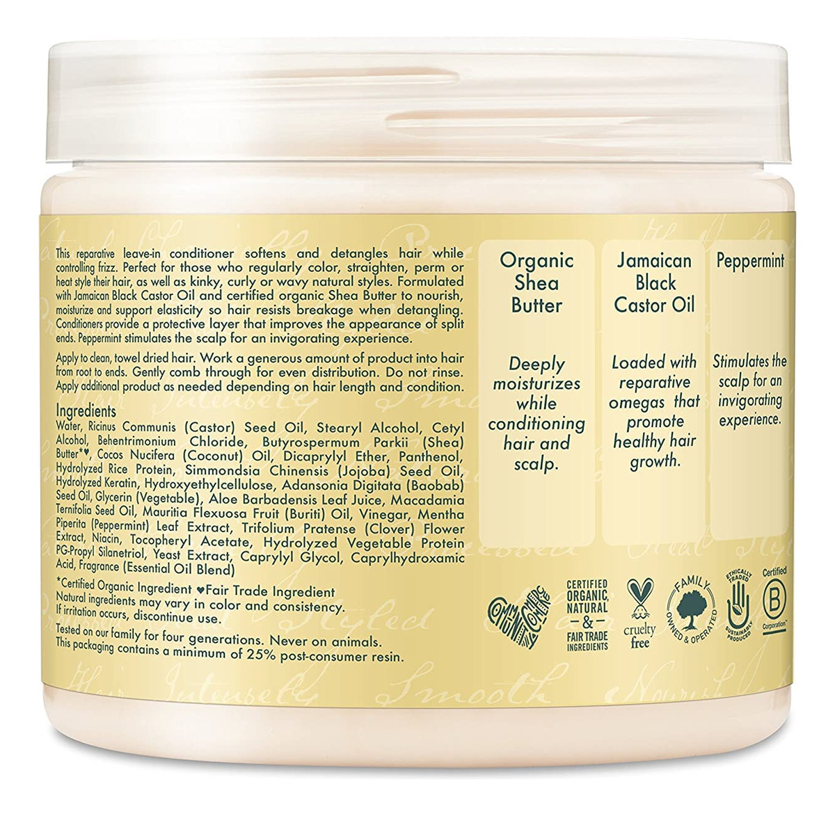 Condicionador Shea Moisture Leave in com óleo de rícino preto jamaicano para crescimento, fortalecimento e restauração do cabelo, vitamina E, produtos para cabelos encaracolados, seguros para uso na cor do cabelo, tamanho familiar (pacote com 2 a 15 onças de chá) – HIDRATANTE DE VITAMINA E: O óleo de rícino preto jamaicano é uma fonte rica em vitamina E, conhecida por seus benefícios como hidratante capilar e favorecer o crescimento saudável e exuberante de cabelos para todos os tipos de cabelo, incluindo cabelos cacheados. – CABELO MAIS LISO COM VINAGRE DE CIDRA DE 4 MAÇÃS: O vinagre de cidra de maçã está neste condicionador que deixa o cabelo mais liso, fácil de desembaraçar e reduzir qualquer couro cabeludo coceira ao diminuir o pH do cabelo e do couro cabeludo. – CONDICIONADOR PROFUNDO COM MANTEIGA DE KARITÉ ORGÂNICA: A manteiga de karité orgânica condiciona profundamente o cabelo e o couro cabeludo secos, retém a umidade e deixa os cabelos mais macios sem obstruir os poros. – A hortelã PODE PREVENIR A QUEDA DE CABELO: A hortelã pode ajudar a melhorar o crescimento do cabelo e pode prevenir a queda do cabelo. Também proporciona uma experiência refrescante e revigorante no couro cabeludo. – INSTRUÇÕES DO CONDICIONADOR LEAVE IN: Para obter melhores resultados, aplique uma quantidade generosa do produto nos cabelos limpos e secos com uma toalha. Penteie suavemente para uma distribuição uniforme. Aplique mais condicionador Leave in conforme necessário antes de modelar.