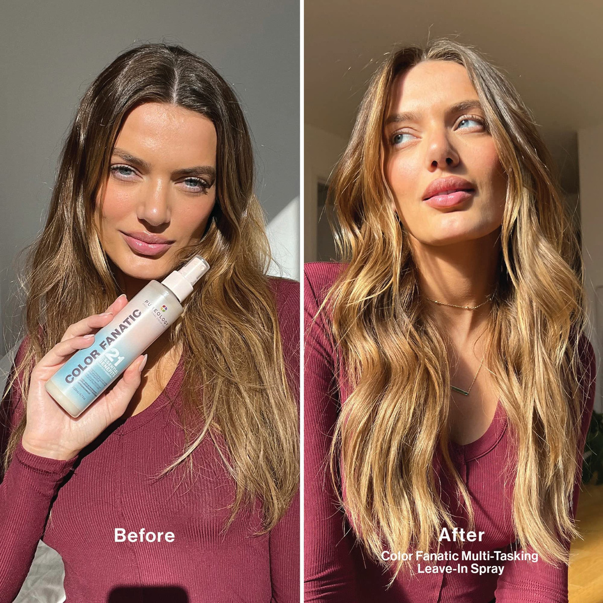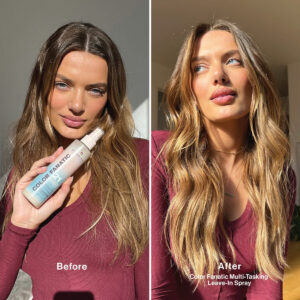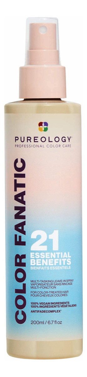 Condicionador Leave-in Pureology Color Fanatic Spray desembaraçador para tratamento capilar | Protege a cor do cabelo do desbotamento | Protetor térmico | Vegano | 6,7 fl oz – Spray multibenefício sem enxágue: spray condicionador vegano Color Fanatic com 21 benefícios, prioriza e protege o cabelo do calor, acalma o crespo, protege a cor do cabelo do desbotamento e hidrata todos os tipos de cabelo – Fórmula multitarefa: esta fórmula hidratante A névoa desembaraçante e desembaraçante prepara o cabelo para todas as necessidades de modelagem; o azeite de oliva confere brilho e maciez, enquanto os óleos de camelina e coco ricos em ômega-3 nutrem e hidratam — Principais benefícios : Hidrata cabelos secos e danificados, fortalece e repara os danos, protege contra danos causados pelo calor e desbotamento da cor, equilibra o pH do cabelo, desembaraça, suaviza e dá brilho a todos os tipos de cabelo – Uso sugerido: use como sua primeira etapa de modelagem que prepara e protege; borrife todo o cabelo limpo e úmido e penteie uniformemente. Em seguida, estilize como de costume. Use antes de outros produtos de modelagem da Pureology – Com a confiança de salões e profissionais, o spray condicionador Leave-In Color Fanatic da Pureology é vegano e sem sulfato. Use o Color Fanatic antes de outros produtos de modelagem da Pureology para proteção de cores