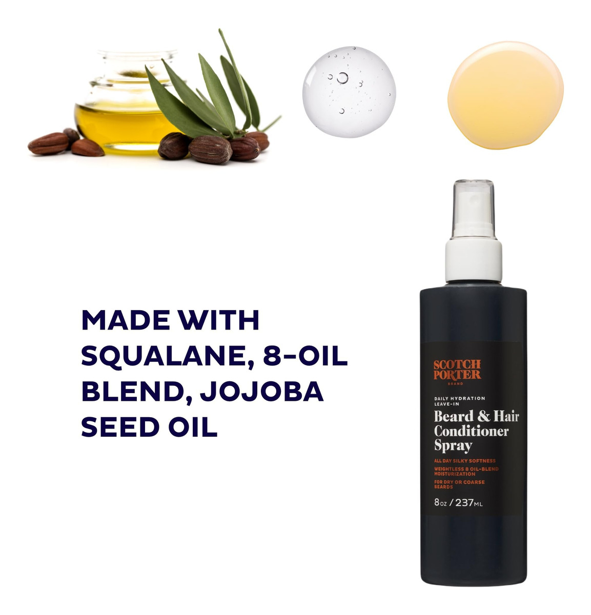 Spray condicionador Scotch Porter Leave-in: spray condicionador masculino de hidratação diária para barba e cabelo sem enxágue de coco, abacate e muito mais | Ingredientes não tóxicos, sem parabenos, sulfatos e silicones | 8 onças (pacote com 2) – Suaviza e hidrata: fórmula condicionadora leve e cheia de energia com oito óleos superhidratantes, incluindo argan, marula, abacate e coco e Kukui. Também adiciona uma dose de hidratação e hidratação em dias sem lavagem. – Feito com cuidado e vegano: este condicionador leave-in premium para homens não tem ingredientes ou testes em animais. É livre de parabenos, sem sulfato, sem ftalatos, sem silicone, sem petrolato e não contém PEGs, óleo mineral ou cores sintéticas. Ideal para cabelos masculinos grossos, ondulados, encaracolados, secos, texturizados ou naturais. – INGREDIENTES NATURAIS: A proteína da couve e a casca do salgueiro branco combatem os sinais de danos e ressecamento, incluindo flocos e caspa. Infundido com biotina, uma vitamina do complexo B solúvel em água encapsulada em um lipossoma para melhor entrega. Funciona mais intensamente do que um condicionador normal ou um spray desembaraçador. – FÁCIL DE USAR: Após a lavagem, aplique generosamente nos cabelos úmidos. Massageie suavemente no cabelo e deixe agir. Para obter melhores resultados, siga com o bálsamo e sérum capilar suavizante Scotch Porter. – PERFUME MASCULINO: Este condicionador revigorante contém notas de eucalipto, frutas cítricas, bergamota, cardamomo, lavanda, gerânio, âmbar, cedro, patchouli e almíscar.