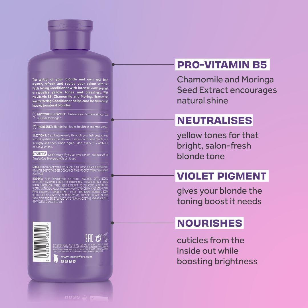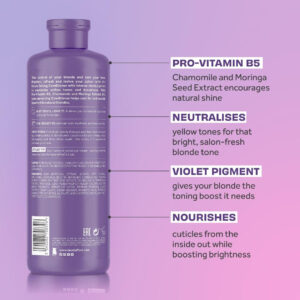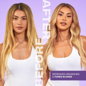 O condicionador Bleach Blondes Purple Toning é nosso melhor condicionador roxo, projetado para deixar o cabelo luxuosamente macio. Aplique sempre que as mechas precisarem de um toque de violeta para superar os tons de bronze. – THE LOWDOWN. Um condicionador profundamente hidratante que reequilibra a cor do cabelo para uma tonalidade mais brilhante. – POR QUE VOCÊ VAI ADORAR. Ele permite que você mantenha seu nível de loiro por mais tempo. – COMO FUNCIONA. Neutraliza os tons de gengibre e cinza dos cabelos loiros. – STAR INGREDIENTS. Nossa marca registrada Pro-Blonde Complex, que contém vitaminas capilares que nutrem as cutículas de dentro para fora. – É CERTO PARA MIM? Ideal para cabelos loiros brilhantes que parecem sedentos e sem brilho. – OS RESULTADOS. O cabelo loiro parece mais brilhante e saudável, imediatamente.