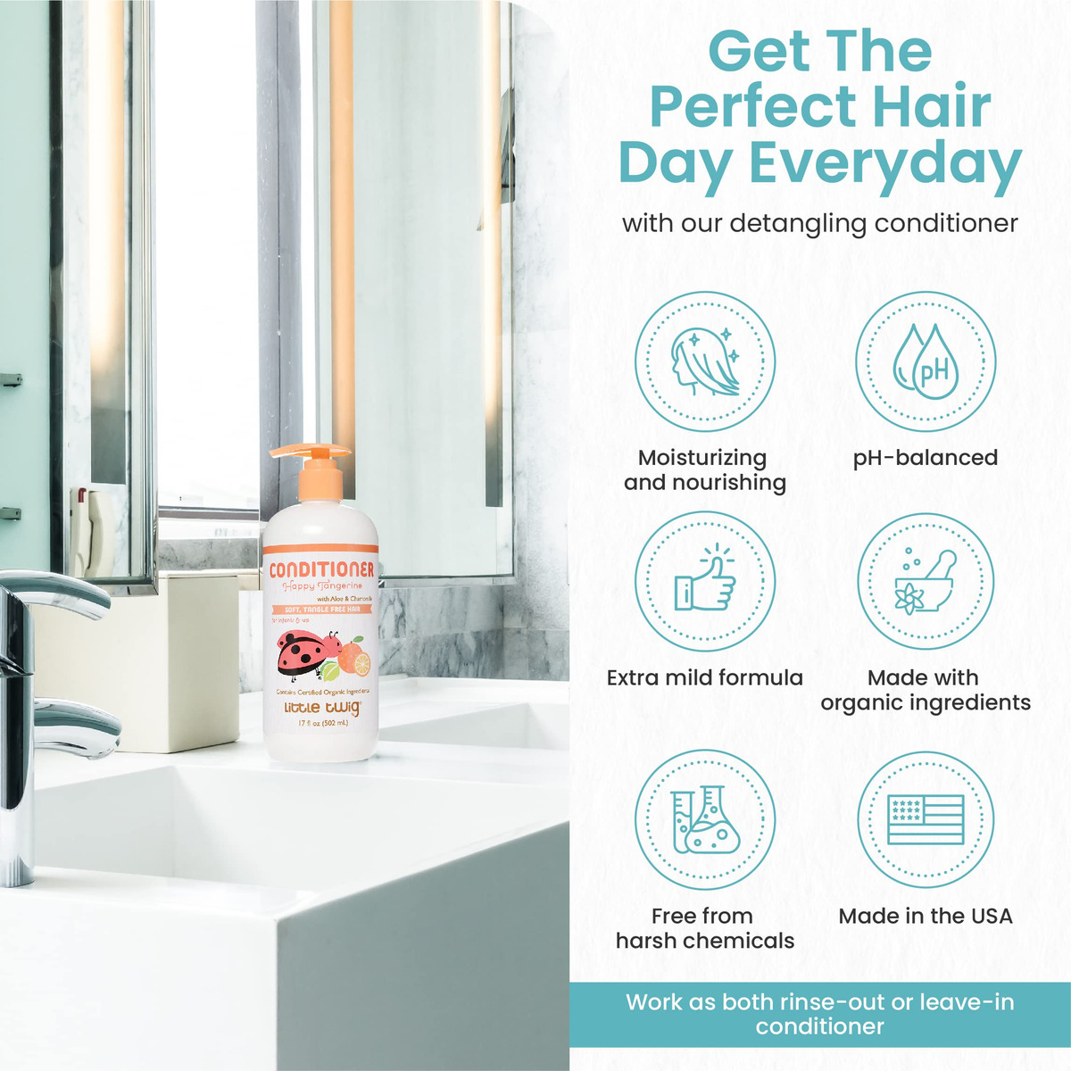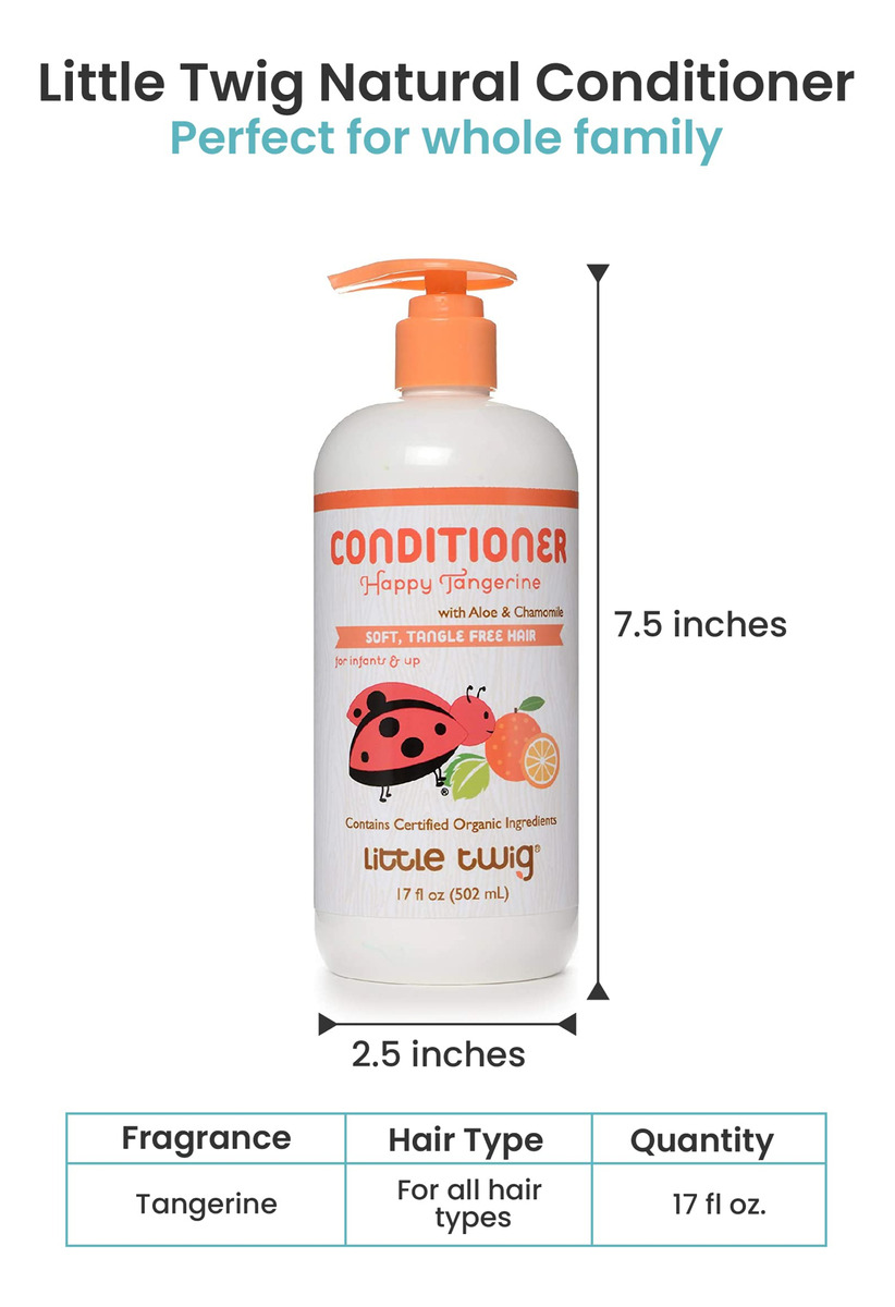 Condicionador desembaraçante Little Twig, condicionador natural com fórmula derivada de plantas, condicionador de cabelo com óleos e extratos essenciais, adequado para toda a família, tangerina, 17 fl oz. – Condicionador Little Twig: obtenha cabelos sedosos e macios adicionando o condicionador Little Twig à sua rotina de cuidados com o cabelo, que pode funcionar como condicionador para enxaguar ou deixar entrar. Ótimo para todos os tipos de cabelo, o condicionador doma facilmente até os cachos mais selvagens. – Fórmula extra suave: feito com ingredientes orgânicos como aloe vera, camomila, calêndula, vitaminas E e B5, extrato de folha de chá branco, óleos essenciais e vegetais naturais – nosso condicionador de cabelo hidrata, nutre e protege seu cabelo delicado. – Condicionador refrescante: infundido com extratos de frutas de tangerina, borragem, e tangerina, nosso condicionador refrescante fornece uma explosão suave e sutil de aroma cítrico que revitaliza seus sentidos para tornar sua hora de banho aromática e agradável. – Livre de produtos químicos agressivos: nosso condicionador natural é livre de parabenos, sulfatos (SLS, SLES, SCS), fragrâncias artificiais, irritantes, corantes, glúten, silicones e ftalatos, tornando-o a escolha perfeita para toda a família. – Fabricado nos EUA: temos o compromisso de fornecer cuidados capilares naturais e eficazes para toda a família. É por isso que nosso condicionador tem pH balanceado, recomendado pelo pediatra, orgânico, livre de crueldade e vegano, garantindo a segurança adequada de você e de seus filhos.