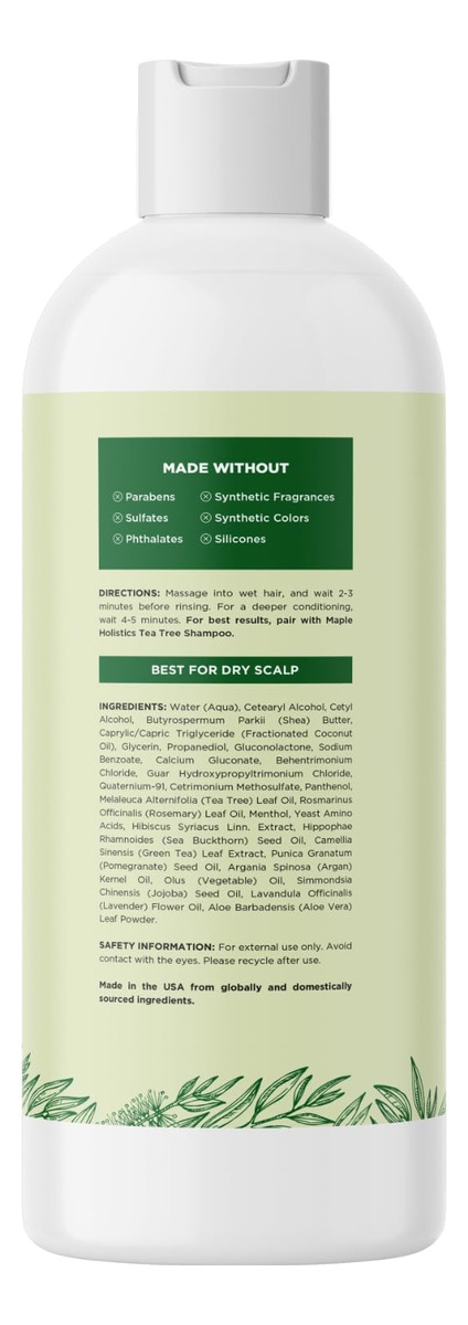 Dê ao seu cabelo o impulso que ele merece com nosso condicionador nutritivo e hidratante com ingredientes ricos em nutrientes. Acreditamos no poder dos óleos essenciais e é por isso que cada uma de nossas fórmulas de condicionador contém óleos essenciais de limpeza, hidratação e purificação para cabelos. Embora tenhamos orgulho de incluir muitos ingredientes naturais em nossos condicionadores hidratantes, também nos orgulhamos de ser exclusivamente livres de parabenos, sulfatos e silicone. Como resultado, nossos condicionadores são todos seguros de cor e ideais para adultos de todas as idades. Experimente nosso condicionador hoje e aproveite os benefícios da aromaterapia dos óleos naturais e o poder nutritivo dos óleos essenciais para ajudar a transformar seu cabelo. – Cuidados com os cabelos com melaleuca – Veja o que o óleo de melaleuca para o cuidado do cabelo pode fazer por você com nosso condicionador de cabelo seco para cabelos danificados, que ajuda a reter a umidade e os nutrientes para melhorar a aparência do cabelo e do couro cabeludo – Dica sobre caspa – Uma das maneiras mais fáceis de evitar coceira no couro cabeludo e descamação é se livrar desse artificial condicionador de caspa com sulfatos prejudiciais e escolha um com ingredientes naturais mais hidratantes – Dry Scalp Care – Go para cuidar do couro cabeludo e do cabelo com óleo de melaleuca e veja como é incrível o óleo de melaleuca para couro cabeludo como um potente hidratante para o couro cabeludo e para cuidar do couro cabeludo seco e escamoso com óleos hidratantes para o cabelo – Contém óleos naturais – Acreditamos em produtos para o cabelo feitos com ingredientes botânicos, e é por isso que nosso condicionador clareador, sem sulfato, fórmula sem parabenos contém óleo de lavanda e alecrim – Maple Holistics Quality – Esperamos que você adore nosso condicionador clareador, sem sulfato, sem parabenos condicionador sem sulfato de óleo de melaleuca porque usamos ingredientes e óleos premium para o cabelo, porque você não merece nada além do melhor para o seu cabelo