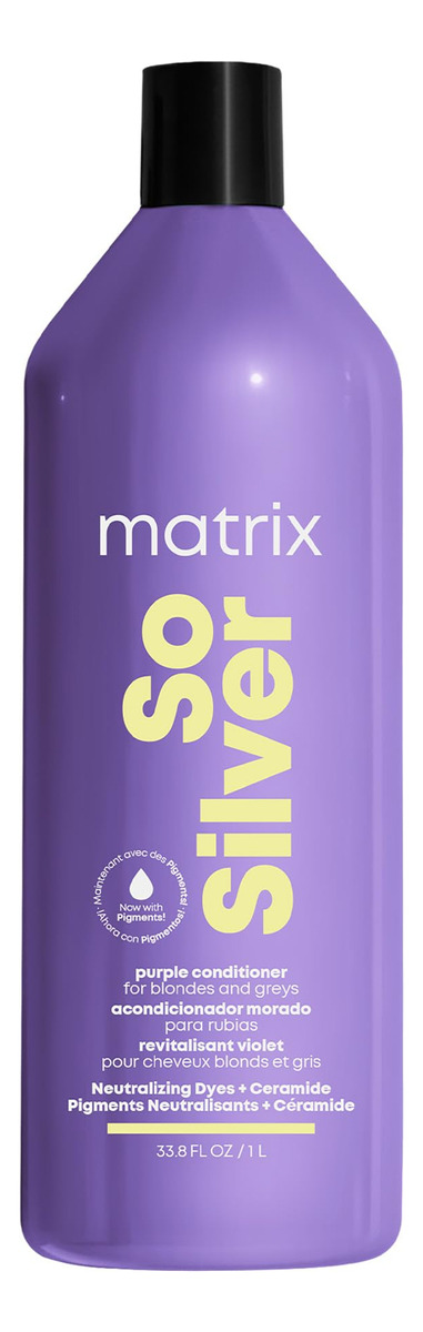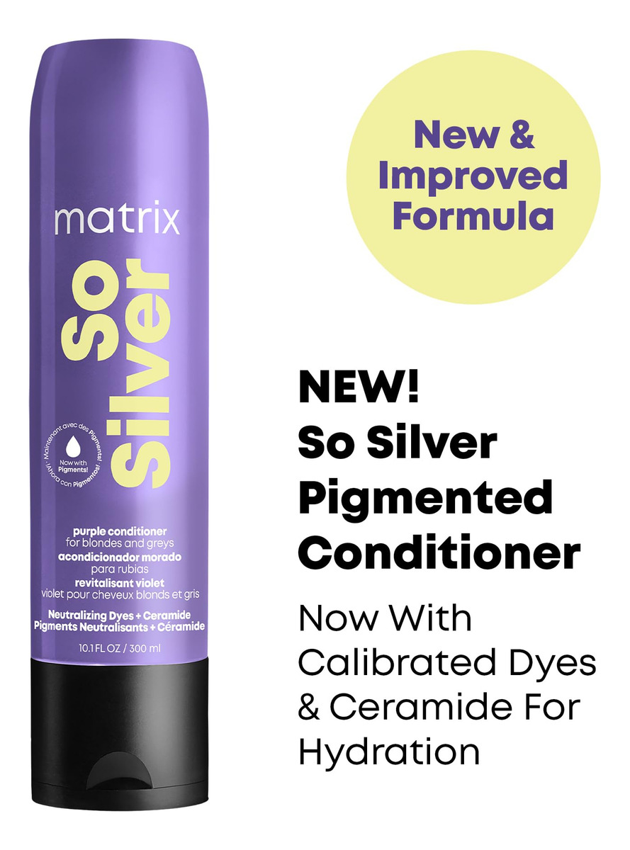 Condicionador Matrix So Silver Purple | Remove tons de amarelo acastanhado | Deposita e tonifica a cor | Condicionador pigmentado para loiras e grisalhas | Para cabelos tingidos | Condicionador de salão | Vegano – Neutralizante – Hidratante – Nutritivo – Fortalecedor – Condicionador