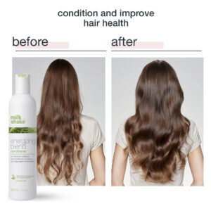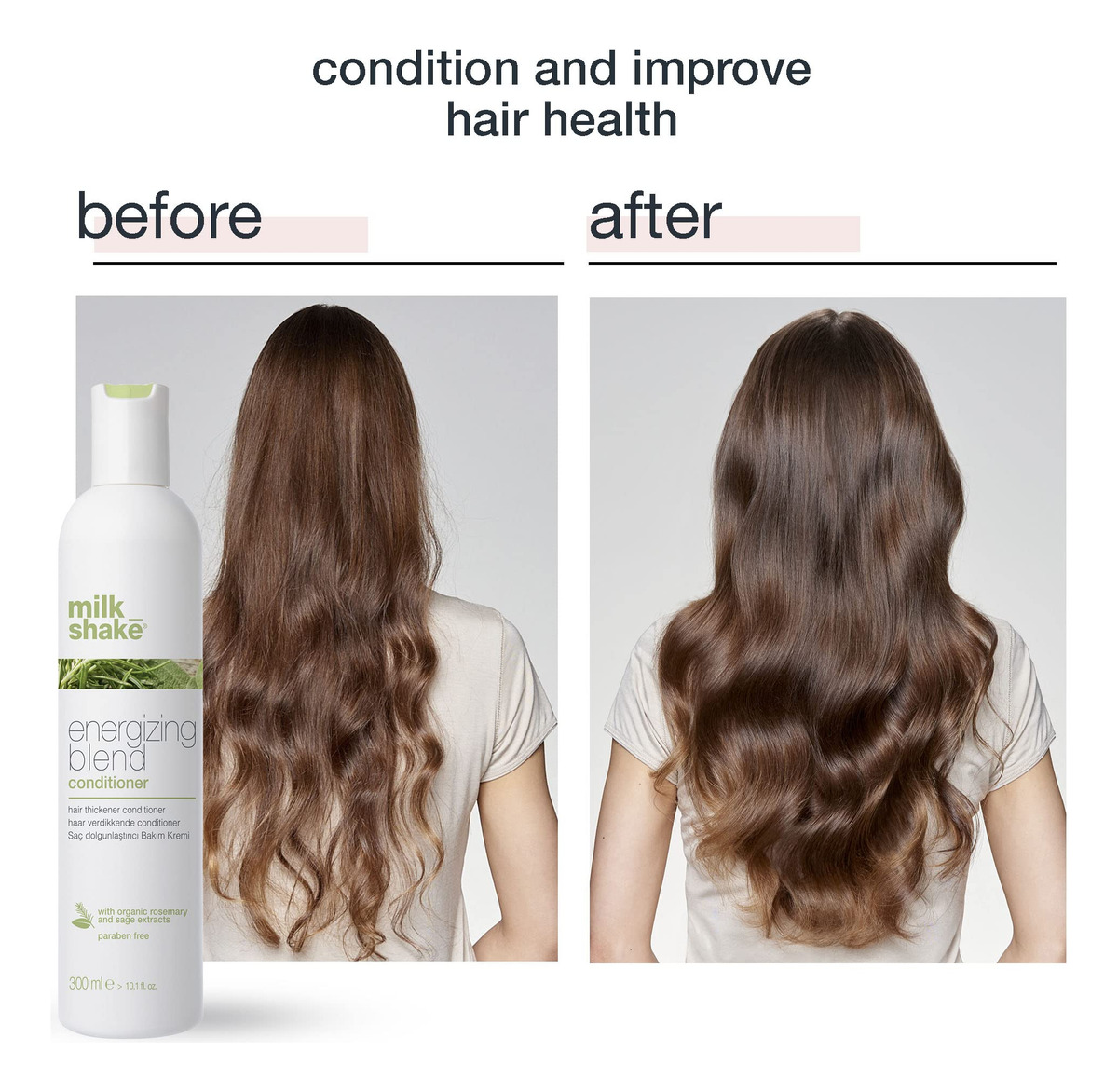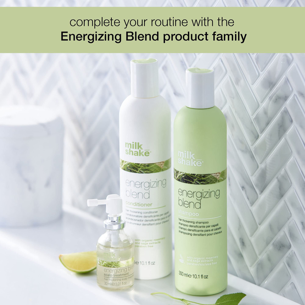 Condicionador milk_shake Energizing Blend, 33,8 fl oz — o condicionador de mistura energizante milk_shake para cabelos finos limpa profundamente, mas suavemente, os cabelos frágeis. Este condicionador de cabelo fino hidrata e desembaraça, além de fornecer nutrientes que fortalecem o cabelo. – A mistura de extratos botânicos e condicionadores especiais revigora o caule do cabelo e dá maciez. O pantenol confere mais densidade ao cabelo, e os óleos essenciais e o eucalipto instilam uma agradável sensação energizante, deixando o couro cabeludo revigorado. – Aplique nos cabelos molhados e limpos e massageie suavemente aplicando uma leve pressão usando as pontas dos dedos em movimentos circulares para melhorar a microcirculação. Enxágue e continue com o tratamento de mistura energizante. – Os produtos de mistura energizante milk_shake são para qualquer pessoa preocupada com a saúde do cabelo, especialmente quando ele está ralo e frágil. Este trio é ideal para cabelos finos, finos e frágeis, respeitando o couro cabeludo e o cabelo e melhorando a densidade do cabelo. – Os produtos para cabelo milk_shake são recomendados por cabeleireiros em todo o mundo. Exclusivos de salão luxuosos agora estão disponíveis online.