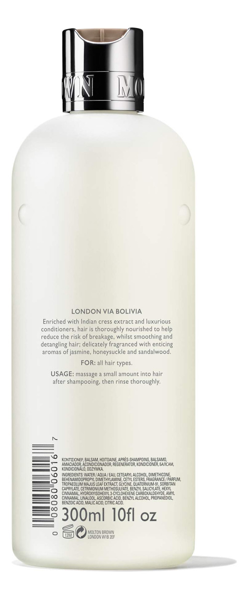 Condicionador purificante Molton Brown com agrião indiano de 10 fl. oz. – Suavize, desembarace e perfume delicadamente seu cabelo com nosso condicionador purificador. – Enriquecido com agrião indiano e notas revigorantes de sândalo, jasmim e madressilva. – Fórmula 100% vegana, livre de crueldade, fabricada na Inglaterra, sem parabenos, fabricada com responsabilidade